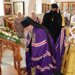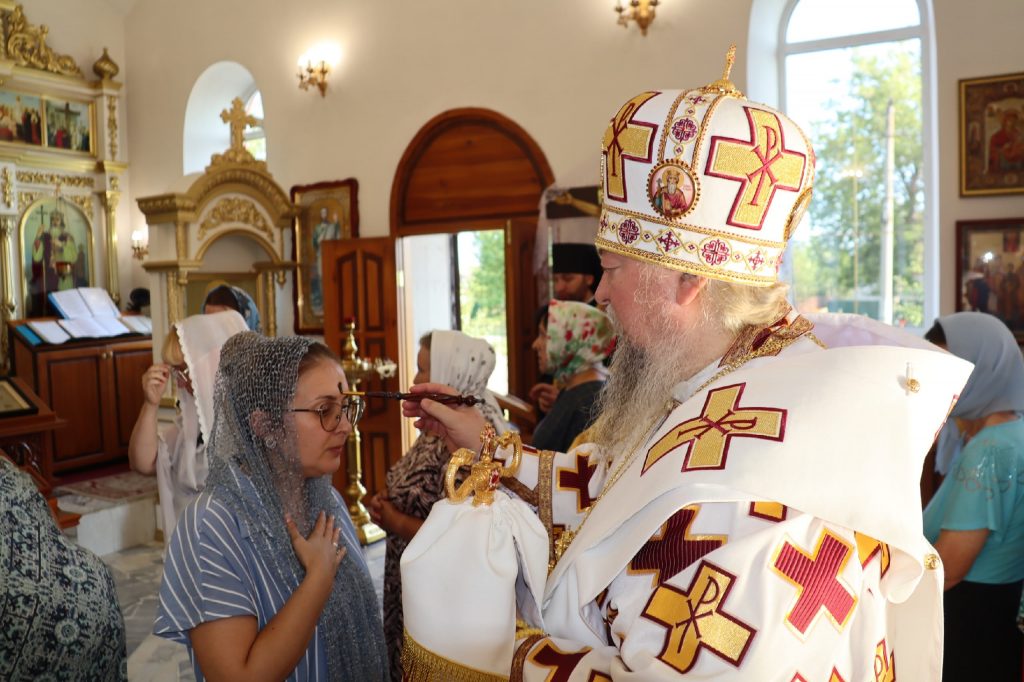 Во время утрени, по прочтении Святого Евангелия, правящий архипастырь помазал освященным елеем духовенство и верующих, собравшихся в храме накануне великого праздника.