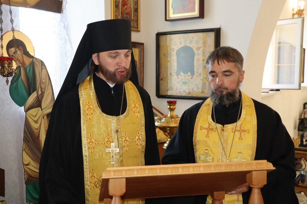 Его Преосвященству сослужили: иеромонах Амвросий (Макаров), врио. секретаря Епархиального Управления; настоятель храма святого равноапостольного князя Владимира г.Сердобска иерей Максим Лосенков; настоятель молитвенного дома Святителя Николая чудотворца с.Кирово Сердобского района иерей Павел Феоктистов; клирики кафедрального собора Архангела Михаила г.Сердобска иеродиакон Иннокентий (Ганин) и диакон Владимир Эрекайкин.