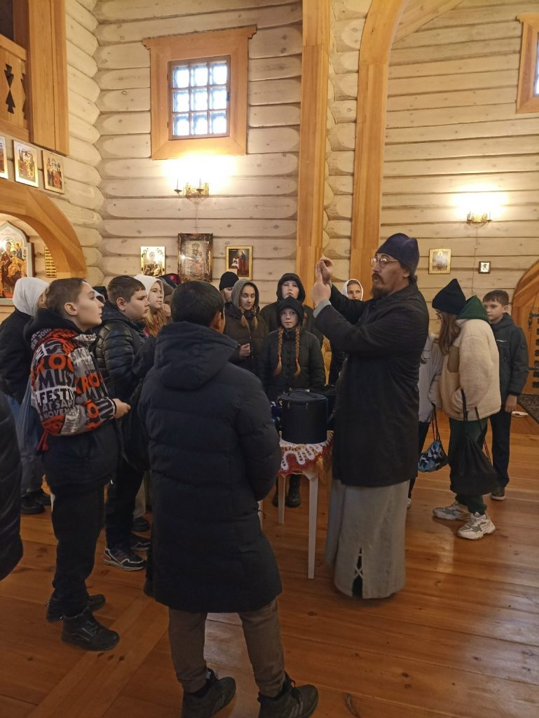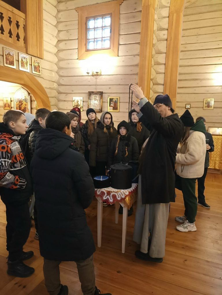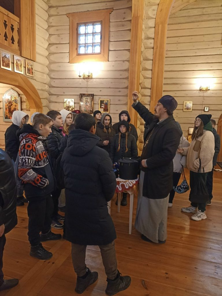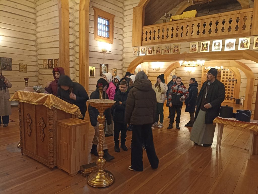 Для лицеистов была проведена экскурсия по храму, который называют чудом деревянного зодчества. Он возведен в традициях архитектуры Русского Севера по уникальной технологии – без единого гвоздя. От проекта до освящения в 2012 году прошло 10 лет.