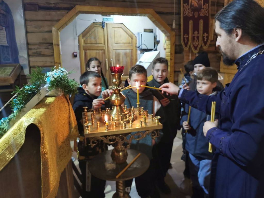 После размышлений об услышанном и благодарственной молитвы дети поставили свечи и с благоговением приложились к мощам святителя Луки Крымского.