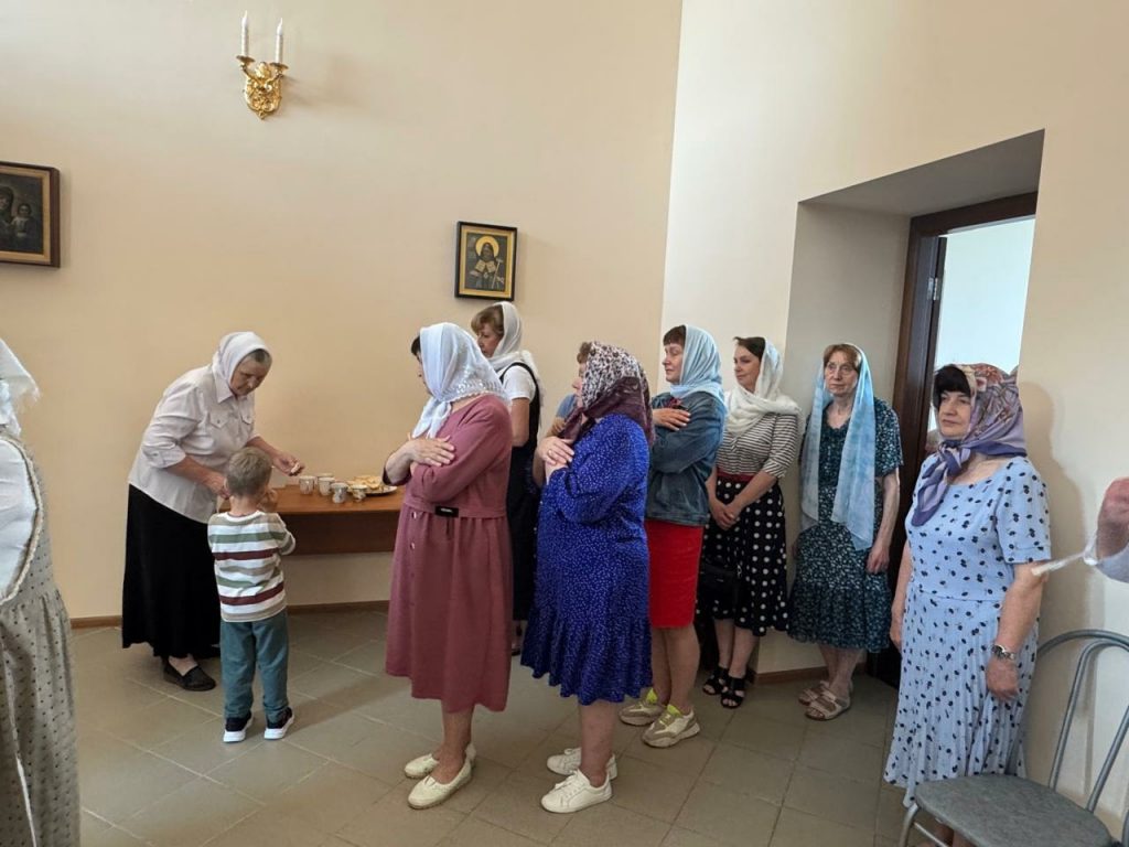 За богослужением молились обучающиеся епархиальных богословских курсов, а также слушатели цикла бесед в рамках проекта «Богословие для мирян». Учебный год они завершили совместной молитвой и причащением Святых Христовых Таин.