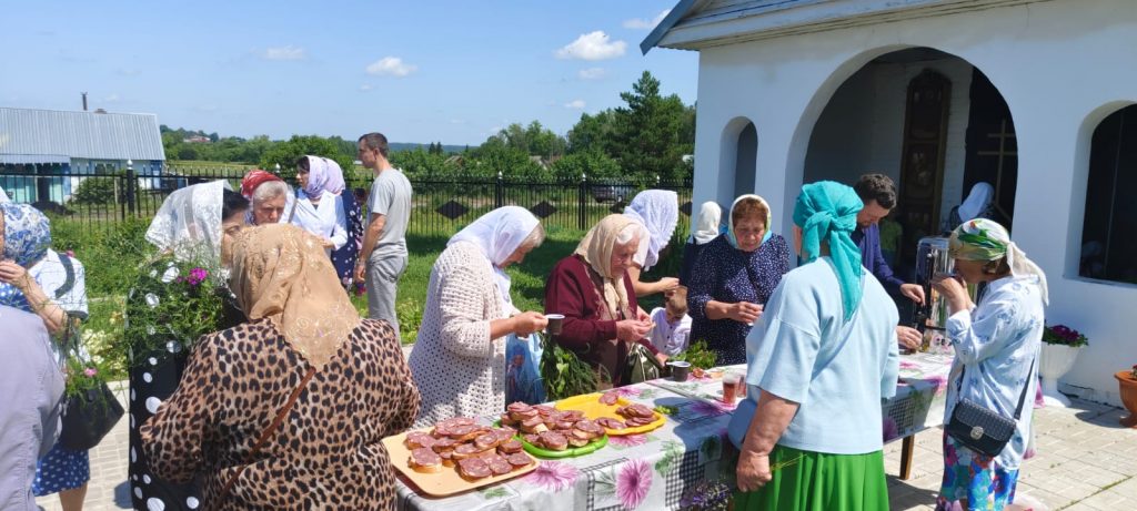 Благочинный Вадинского округа, настоятель храма иерей Константин Проскуряков приготовил для прихожан угощение. На свежем воздухе простая Троицкая трапеза, состоящая из бутербродов и чая, была необыкновенно вкусной.