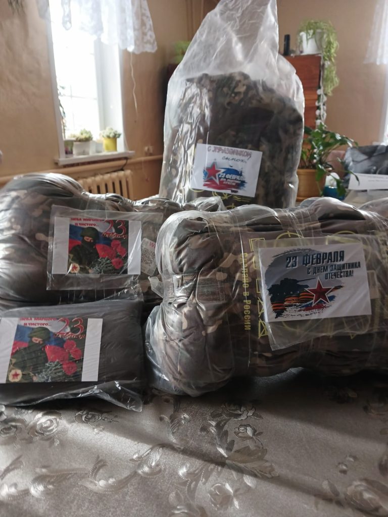 Приуроченная к празднику, Дню защитника Отечества, она содержала сделанные окопные свечи, сухой армейский душ, связанные носки и перчатки, и ,конечно, с большой любовью и от чистого сердца написанные письма и открытки для участников специальной военной операции.