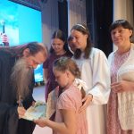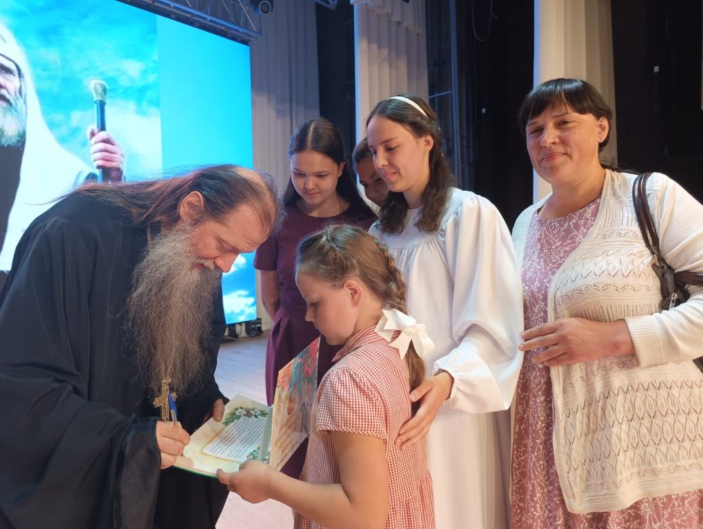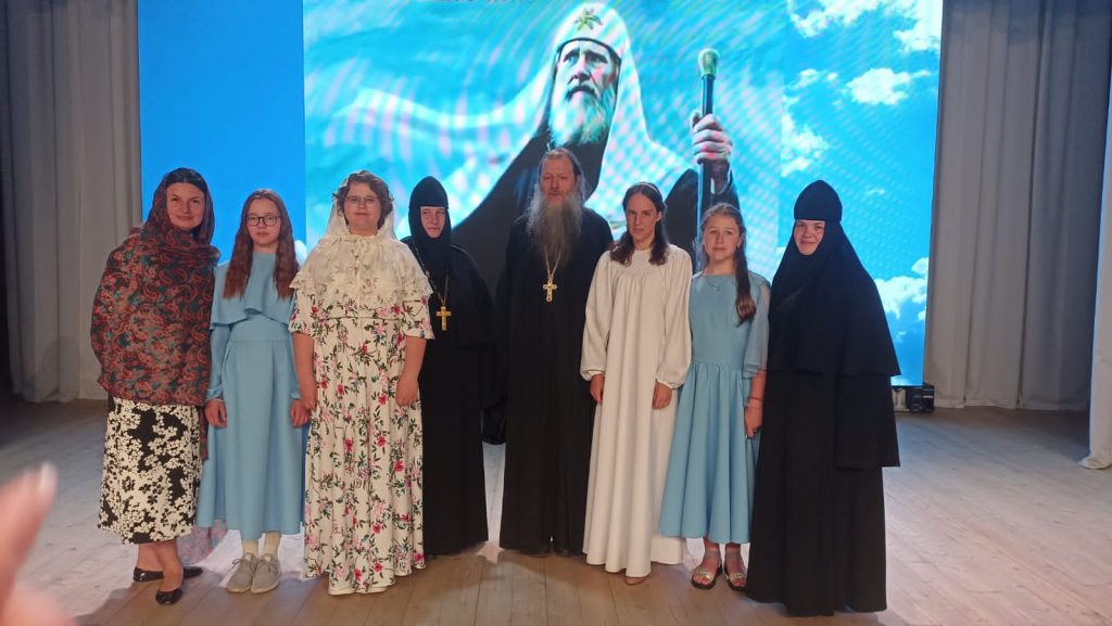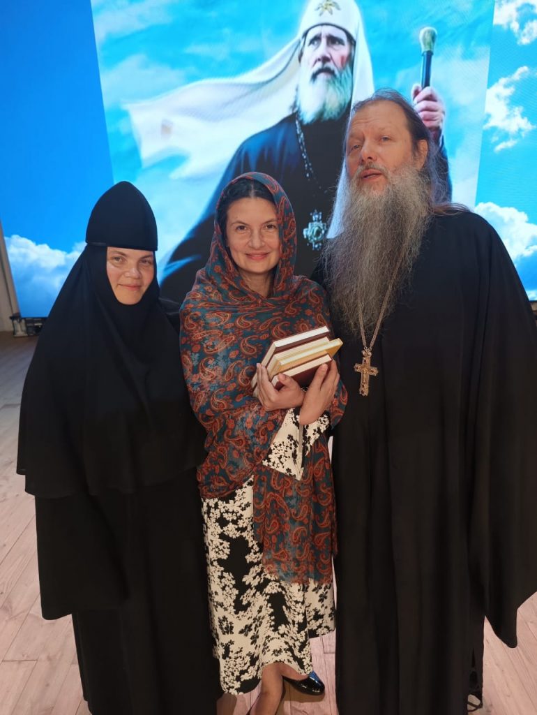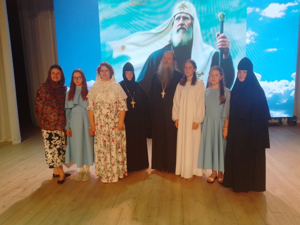 Органичным украшением разговора стали музыкальный фон и соответствующий видеоряд литературной композиции, включающий танец «Там, в небесах» и песню «О святителе Тихоне», написанную для этой встречи композитором Евгением Миловановым на слова Олега Жабика.