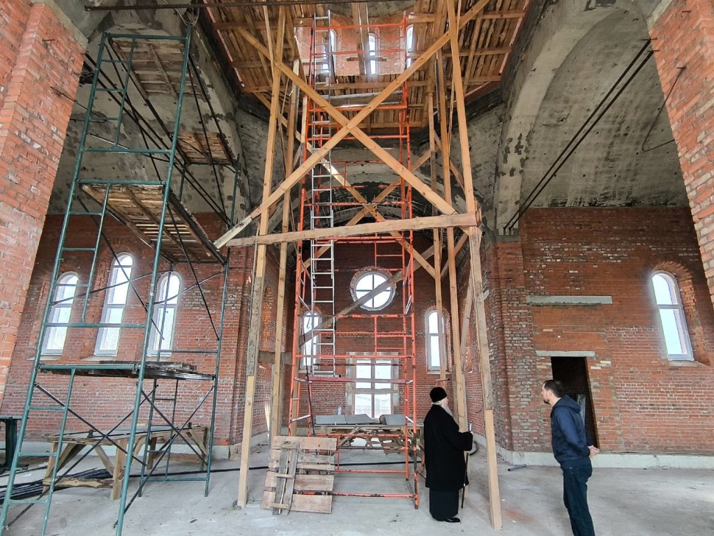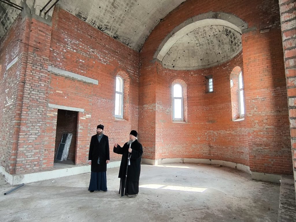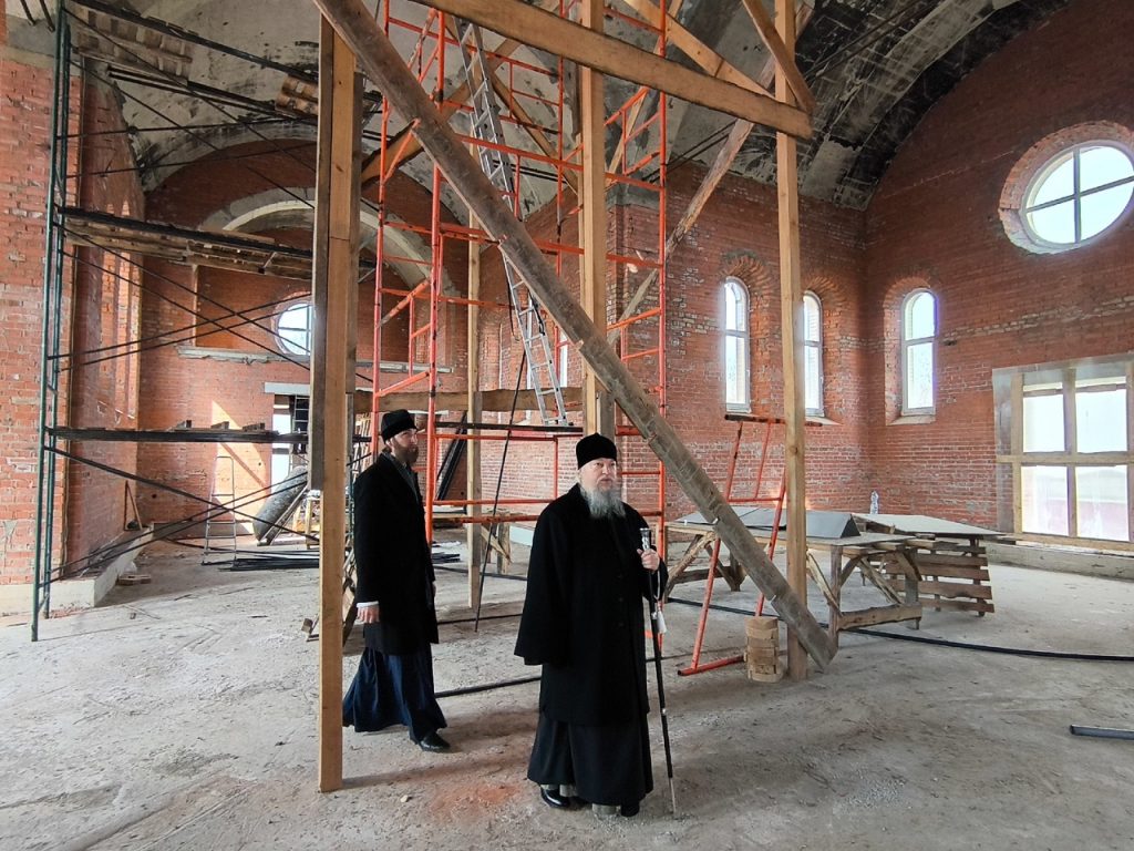 Преосвященнейший Владыка Митрофан ознакомился с ходом ведения строительных и отделочных работ в здании будущей церкви.