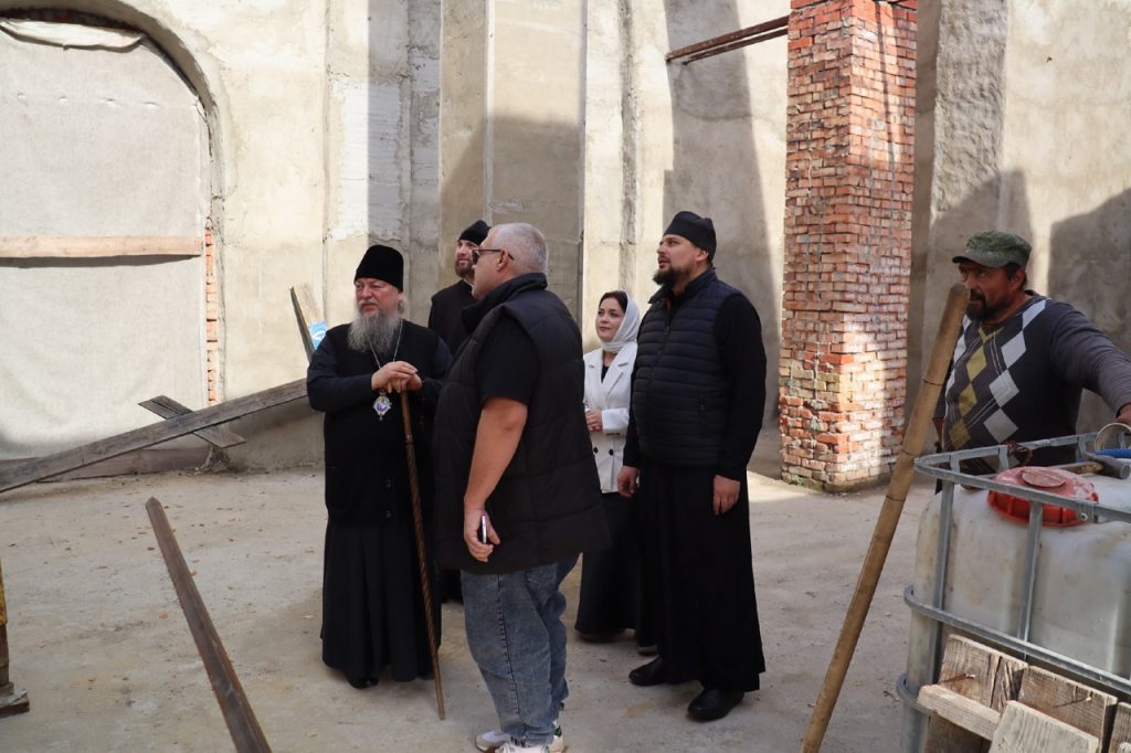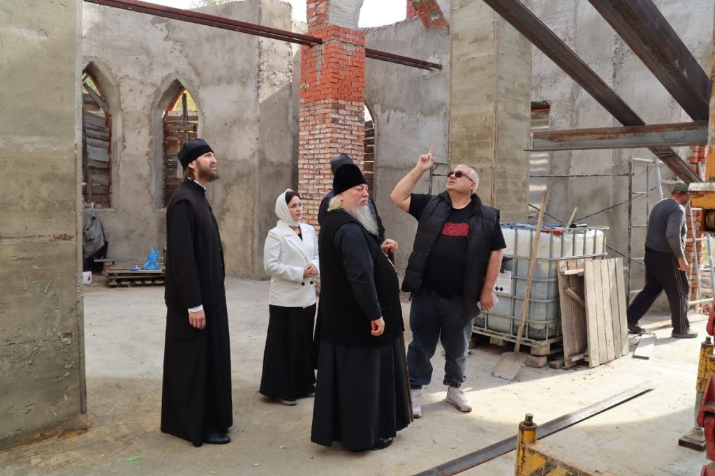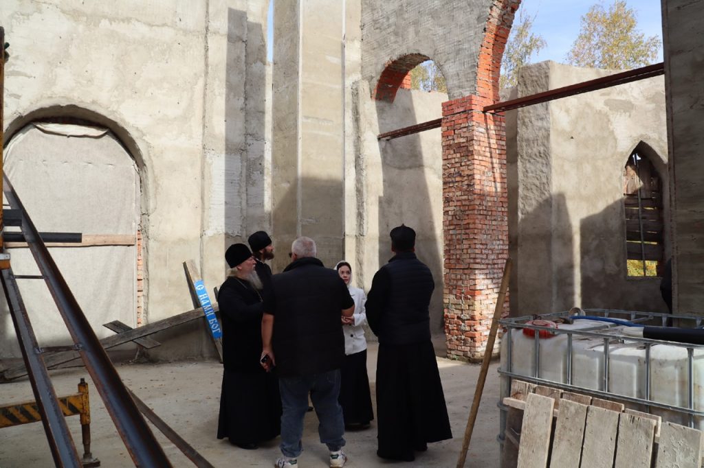 В сопровождении настоятеля храма свт.Николая Чудотворца р.п.Колышлей иерея Димитрия Пятунина Преосвященнейший Владыка Митрофан осмотрел ход строительных работ данного этапа возведения нового храма, а также обсудил вопросы перспективного ведения инженерных и отделочных работ.