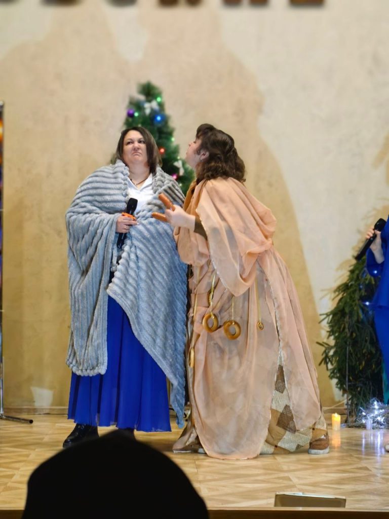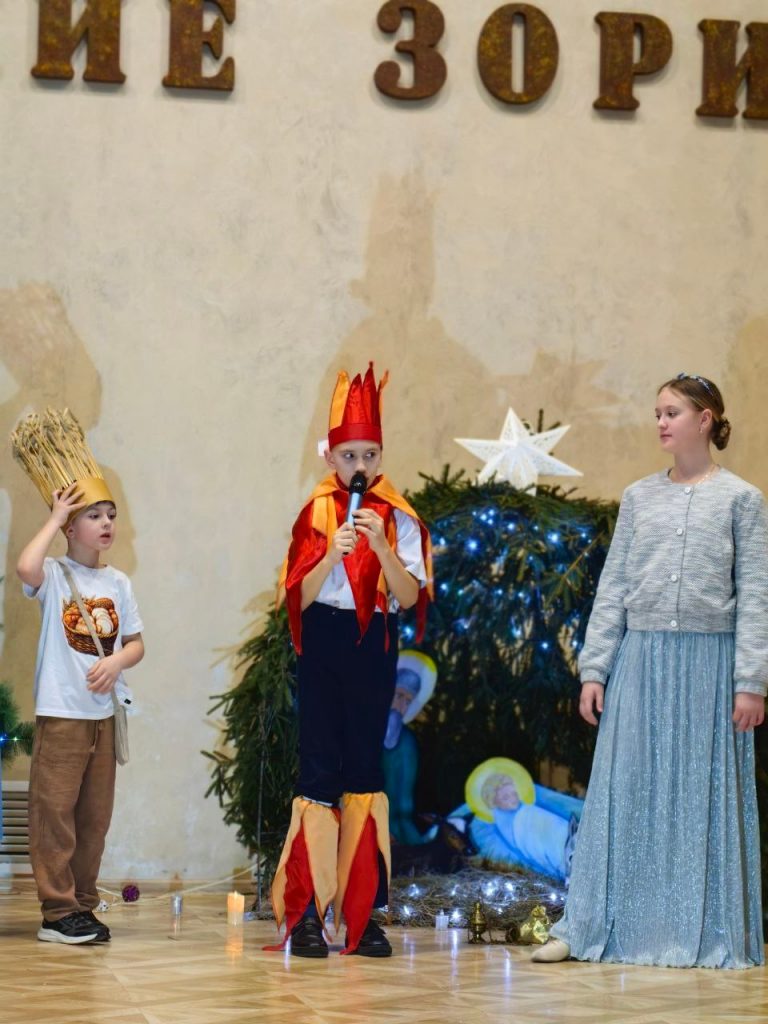 В программу выступления вошла театрализованная постановка, рассказывающая об истории праздника Рождества Христова; в ней освещались духовно—нравственные и семейные ценности и были отражены проблемы, с которыми сталкивается в жизни современное общество.