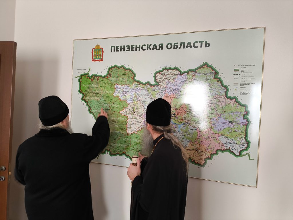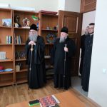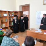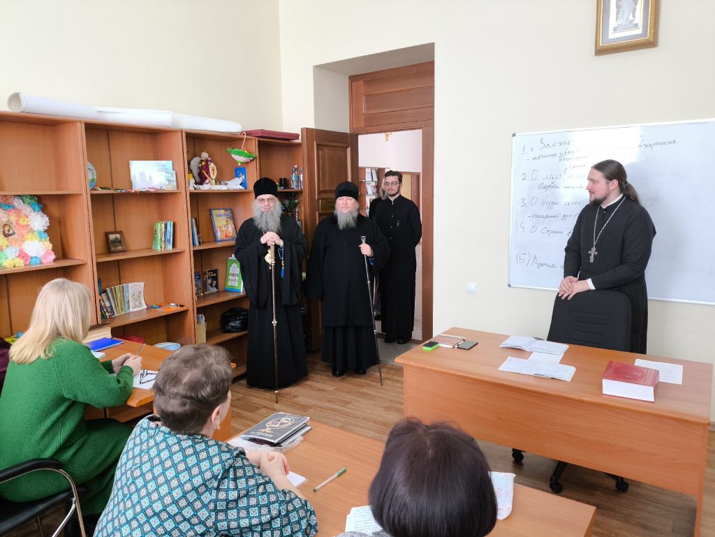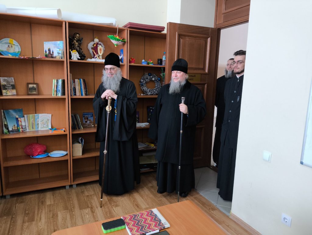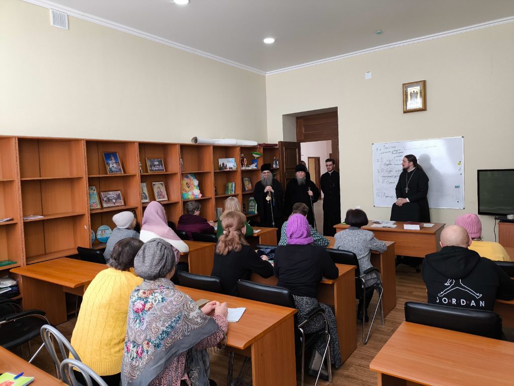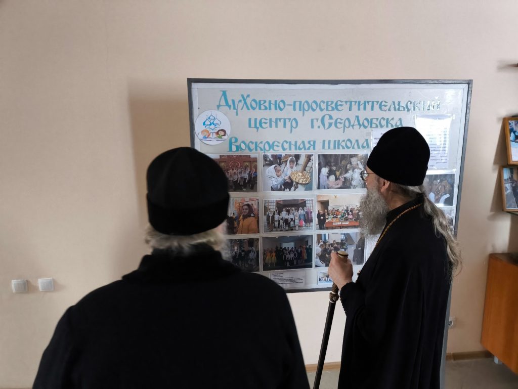 Архипастыри побывали в храме Державной иконы Божией Матери, расположенном в Духовно-просветительском центре г. Сердобска, осмотрели учебные помещения для воспитанников Воскресной группы и епархиального управления и зашли на занятия группы слушателей Епархиальных богословских курсов. Куратор курсов, клирик собора Архангела Михаила г.Сердобска, руководитель епархиального отдела религиозного образования и катехизации иерей Александр Федин и слушатели тепло приветствовали высоких гостей.