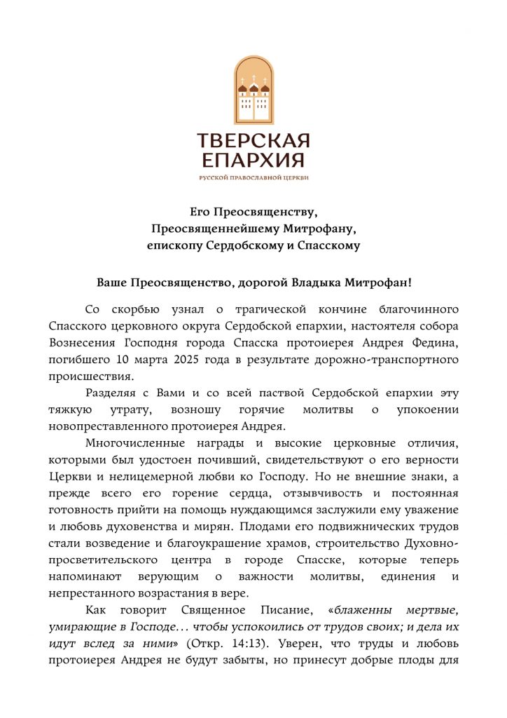 Соболезнования родным, близким и духовным чадам протоиерея Андрея Федина выразил митрополит Тверской и Кашинский Амвросий Мар 11, 2025 0 Comment Post By:Светлана Соболезнования родным, близким и духовным чадам протоиерея Андрея Федина выразил митрополит Тверской и Кашинский Амвросий Поделиться: Вперед Вперед You Might Also Like 17 Дек 2025 0 Протоиерей Артемий Гуменюк провел беседу с обучающимися МБОУ многопрофильный лицей с.Малая Сердоба в храме свт. Николая Чудотворца 17 Дек 2025 0 Иерей Сергий Третьяков принял участие в родительском собрании МОУ СОШ с.Вадинск по профилактике суицидального поведения среди несовершеннолетних 16 Дек 2025 0 По стопам Андрея Первозванного: беседа помощника благочинного с кадетами