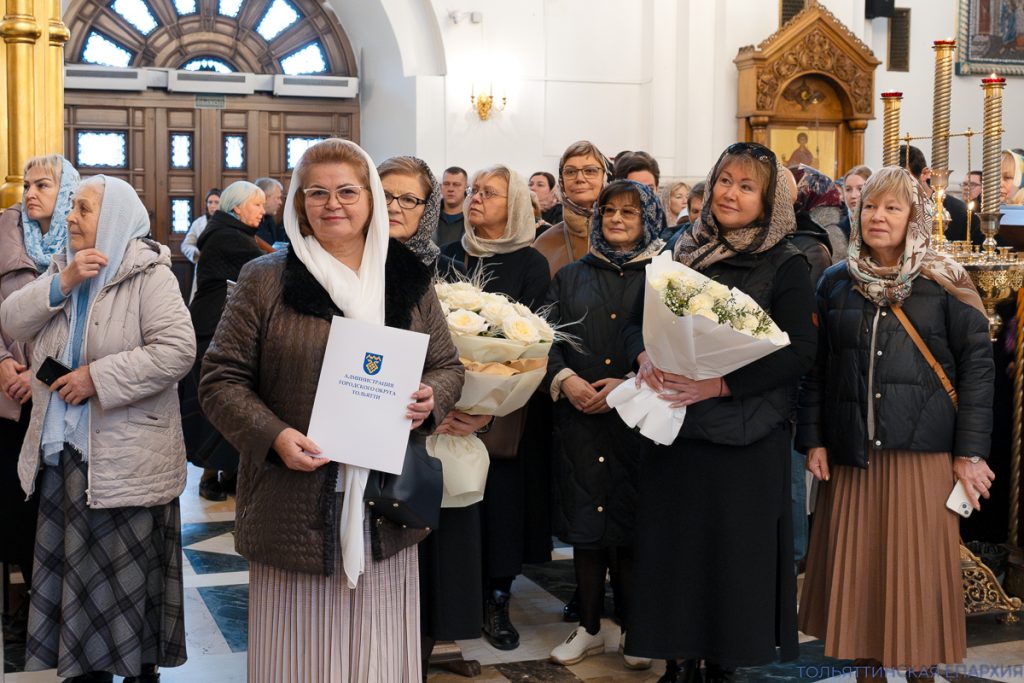 Поздравительный адрес от главы Тольятти И.Г. Сухих зачитала руководитель епархиального отдела по религиозному образованию и катехизации Т.И. Леснякова.
