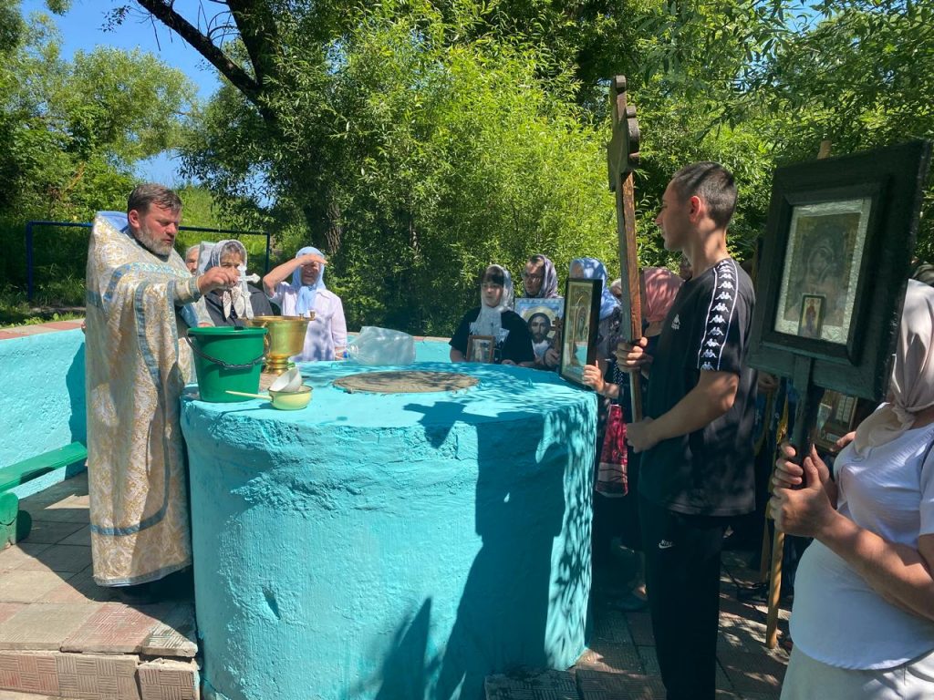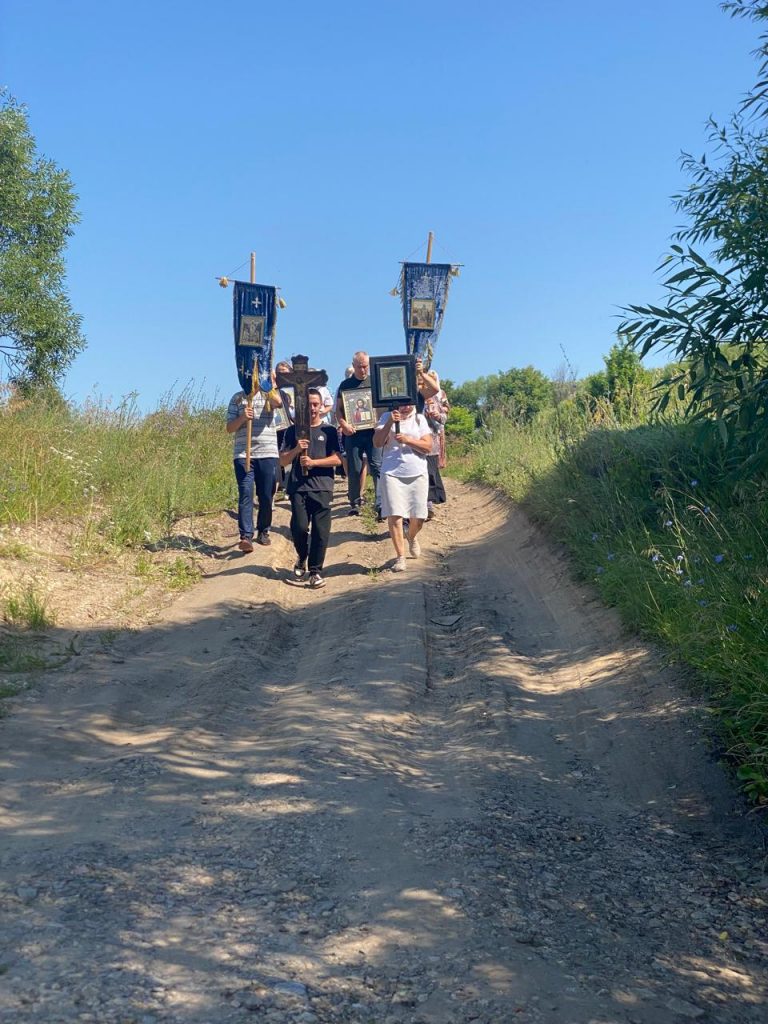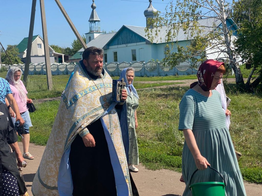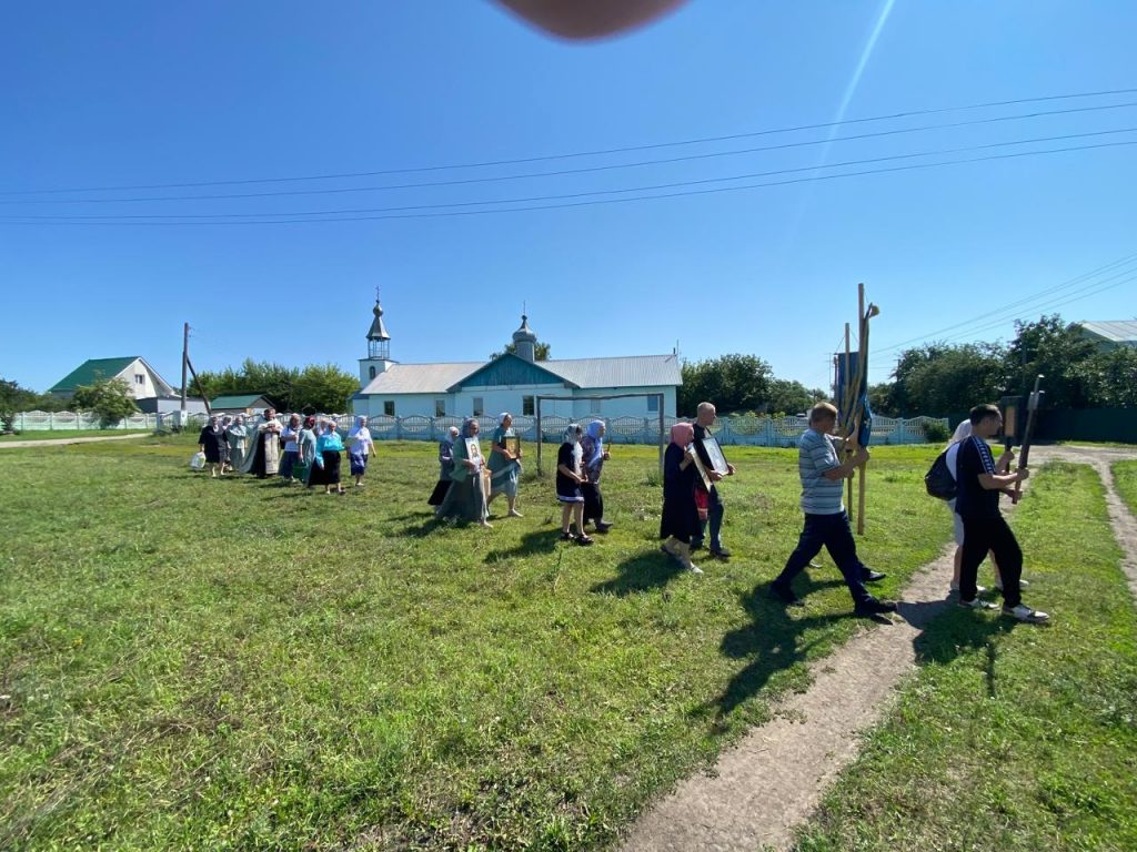 Прихожане вместе со священником прошли по асфальтированной дорожке от молитвенного дома до восточной окраины села Сущевка Колышлейского района, где расположен родник.