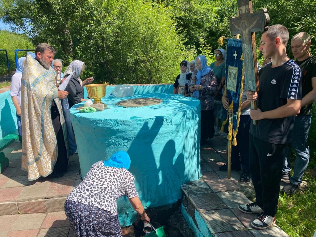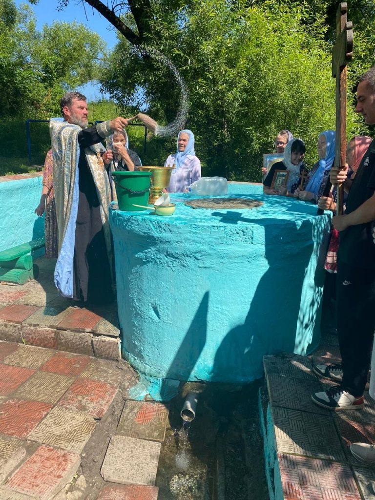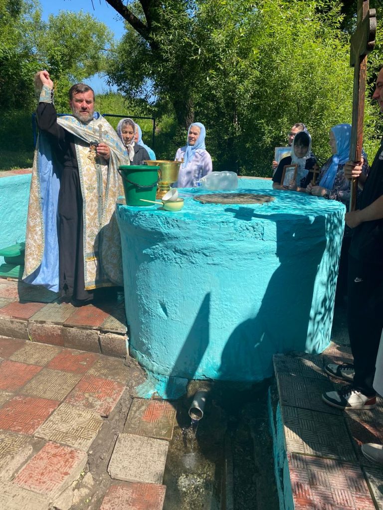 На святом источнике в честь Тихвинской иконы Божией Матери настоятель молитвенного дома протоиерей Марианн Яворский совершил молебен и освятил воду в источнике, после чего все желающие имели возможность испить святой воды и искупаться в купели.