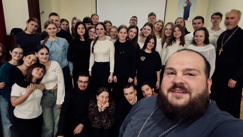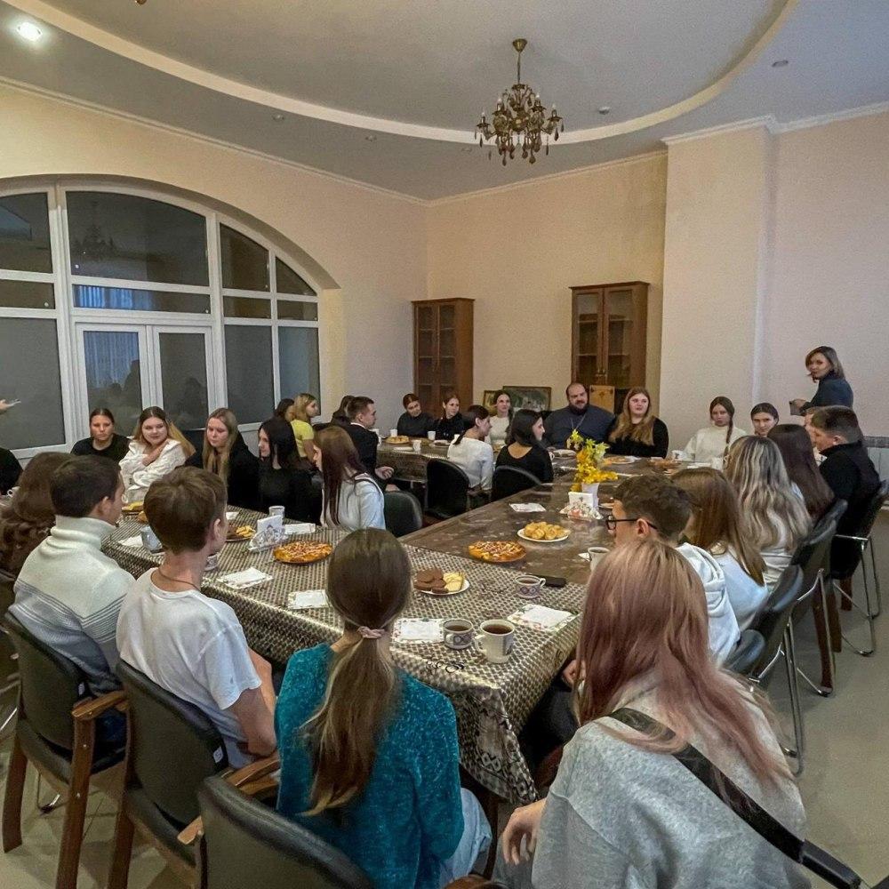 После этого в трапезной Духовно-просветительского центра прошел евангельский ланч для студентов медицинского колледжа, который провели священник Аркадий Назин и главный организатор и редактор Союза православной молодежи «Agape» Ольга Мельникова. Темой встречи стал пролог Евангелия от Иоанна. После разбора отрывка ведущие ответили на вопросы ребят.