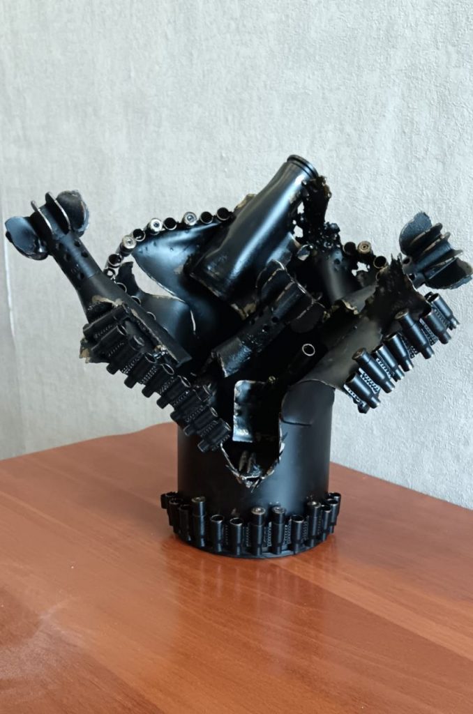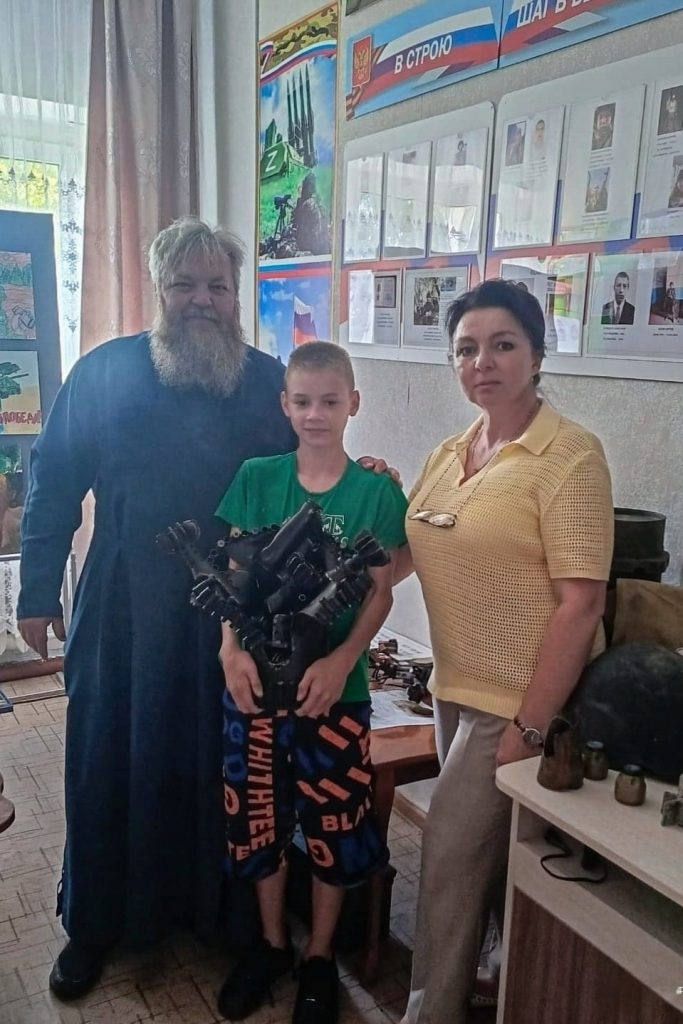 «Вновь, благодаря настоятелю храма, наш музей пополнился новым экспонатом. Бойцы 299 парашютно-десантного полка передали воспитанникам художественную инсталляцию, созданную из боеприпасов. Это символическая скульптура выражает идею, послание молодому поколению о том, что эти предметы несут смерть и разрушение, что война — это всегда горе. Она приносит хаос и разруху. Война забирает самое дорогое: у матерей — детей, у жен — мужей, у человечества — жизнь. Батюшка Иоанн, спасибо большое за привезённый экспонат!», — написала на странице телеграм-группы директор Центра В. В. Синдяева.