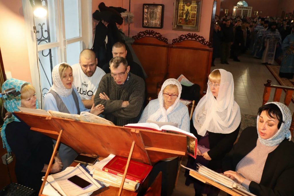 Богослужебные песнопения исполнили хоры храма Рождества Христова с.Трескино и храма святого равноапостольного князя Владимира г.Сердобска под управлением регента Елены Турецких.