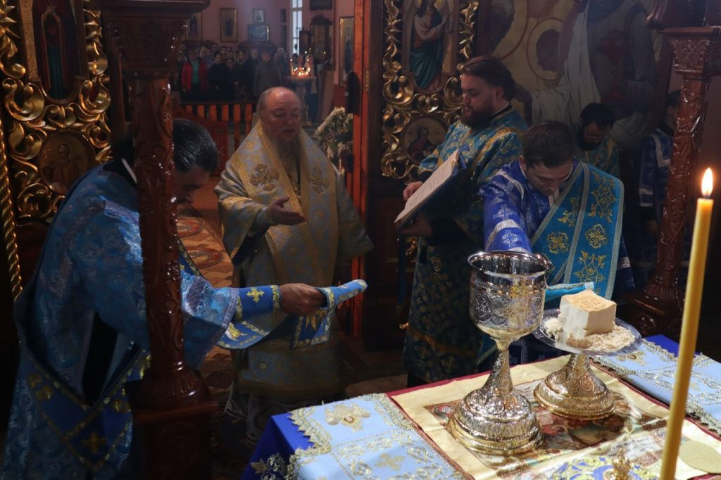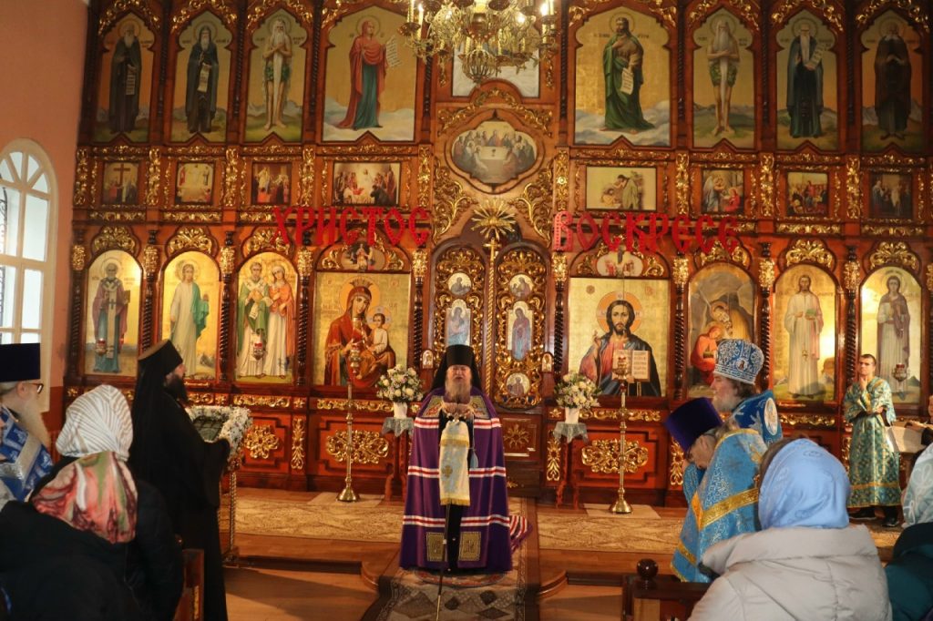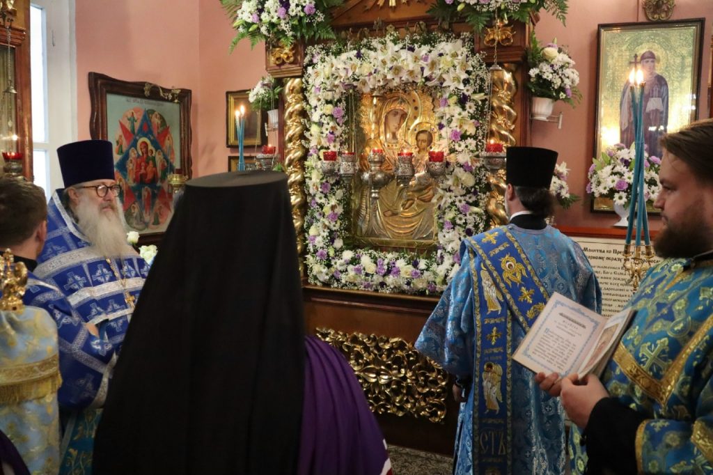 По отпусте литургии было совершено славление Богородице перед чтимой иконой Божией Матери, именуемой «Скоропослушница», и возглашено многолетие.