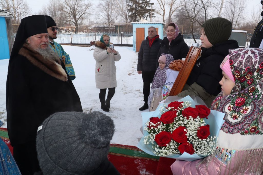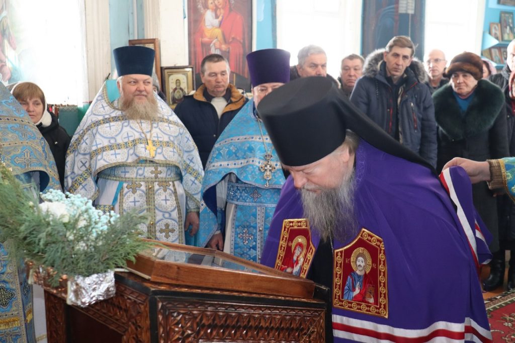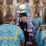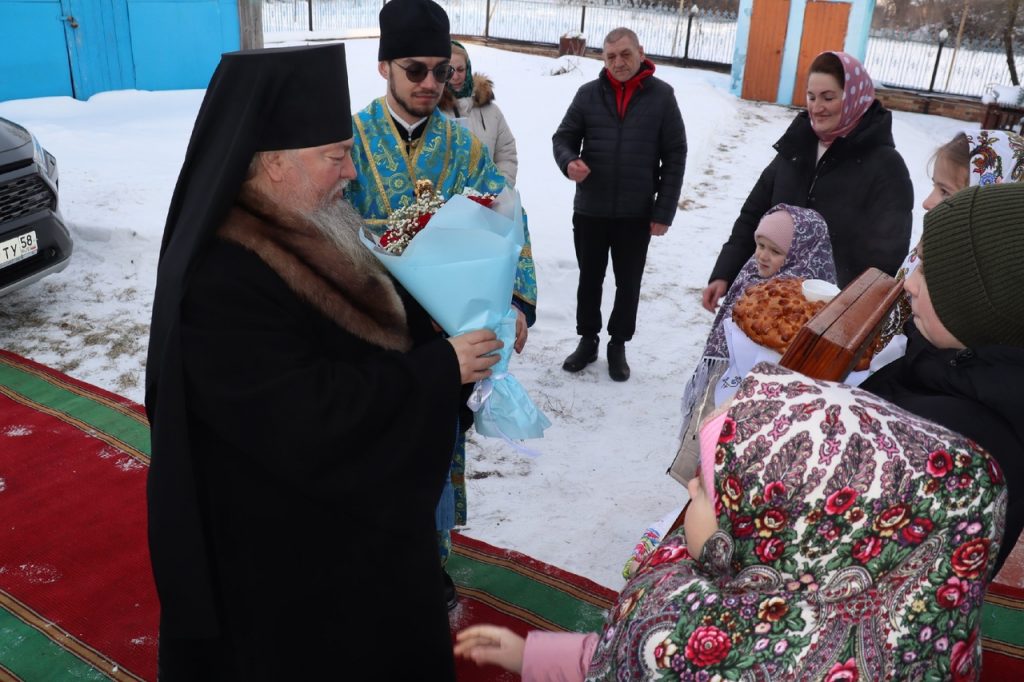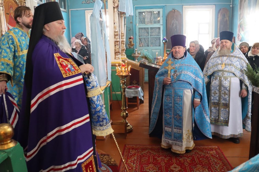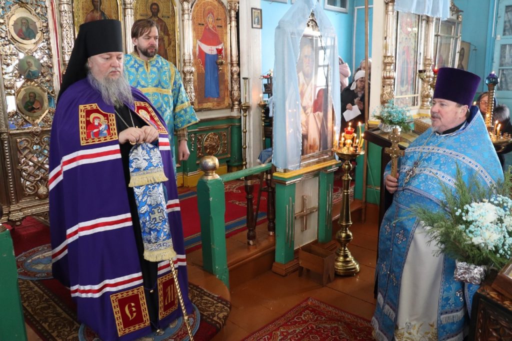 По окончании богослужения благочинный Поимского округа, настоятель Никольской церкви с.Поим протоиерей Георгий Красевич поблагодарил Преосвященнейшего Владыку Митрофана за визит и совместные молитвы.