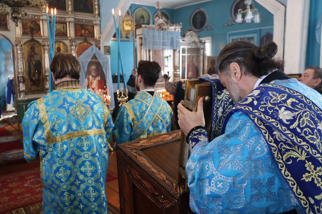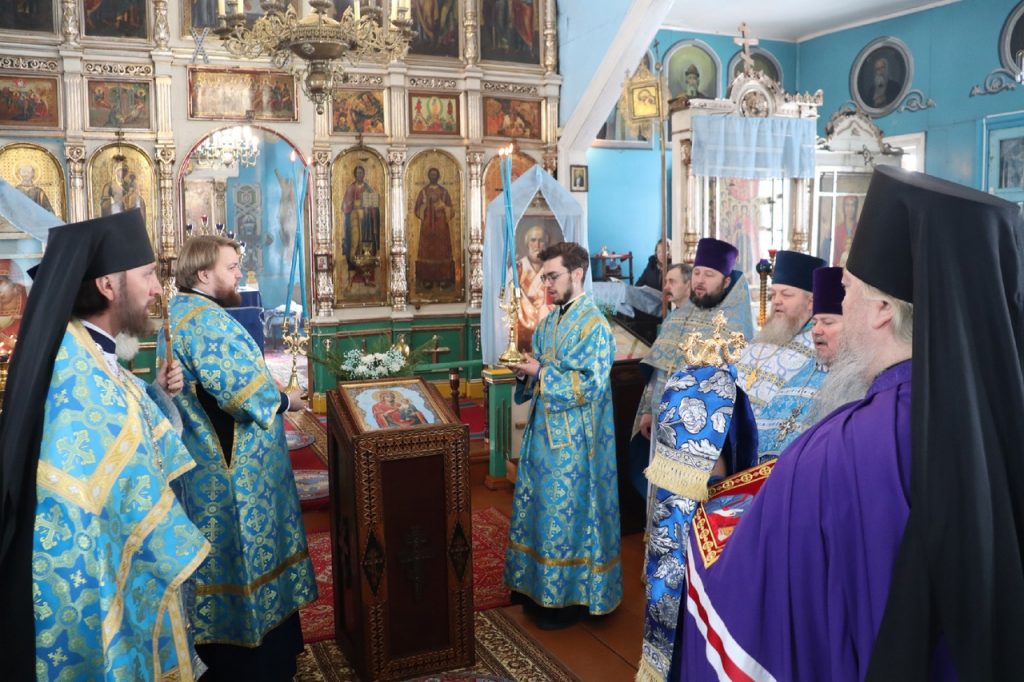 По отпусте литургии было совершено славление Богородице перед чтимой Иверской иконой Божией Матери и провозглашено многолетие.