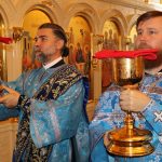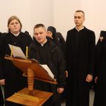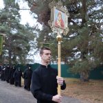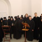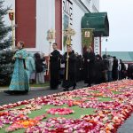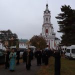 До начала архиерейской службы утром 16 октября в Трубчевском храме протоиереем Владимиром Мишагиным была совершена ранняя Божественная литургия, после которой клирик монастыря, протоиерей Вячеслав Абашин, совершил водосвятный молебен, после чего духовенство обители прошествовало крестным ходом до Успенского собора монастыря.