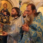 Проповедь по запричастном стихе произнёс клирик обители протоиерей Вячеслав Абашин. По отпусте Божественной Литургии было совершено славление Пресвятой Богородице перед чудотворной Трубчевской иконой Божией Матери и возглашено многолетие. Завершая праздничное Богослужение, епископ Митрофан приветствовал прибывших в обитель гостей, поблагодарил архипастырей за совместную молитву в этот праздничный день и обратился к пастве со словами поздравления. Игумения Иннокентия поблагодарила архипастырей за посещение обители и святые молитвы и преподнесла подарочное издание новой книги «Возрождение Сканова монастыря» и вышитые Литургические наборы, изготовленный в золотошвейной мастерской обители. После этого Высокопреосвященный митрополит Серафим поздравил собравшихся с праздником. Владыка преподнёс в дар обители большую старинную икону Двунадесятых праздников в окладе. Матушке Иннокентии митрополит Серафим подарил наперсный крест из перламутра.