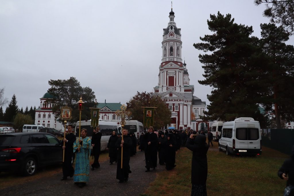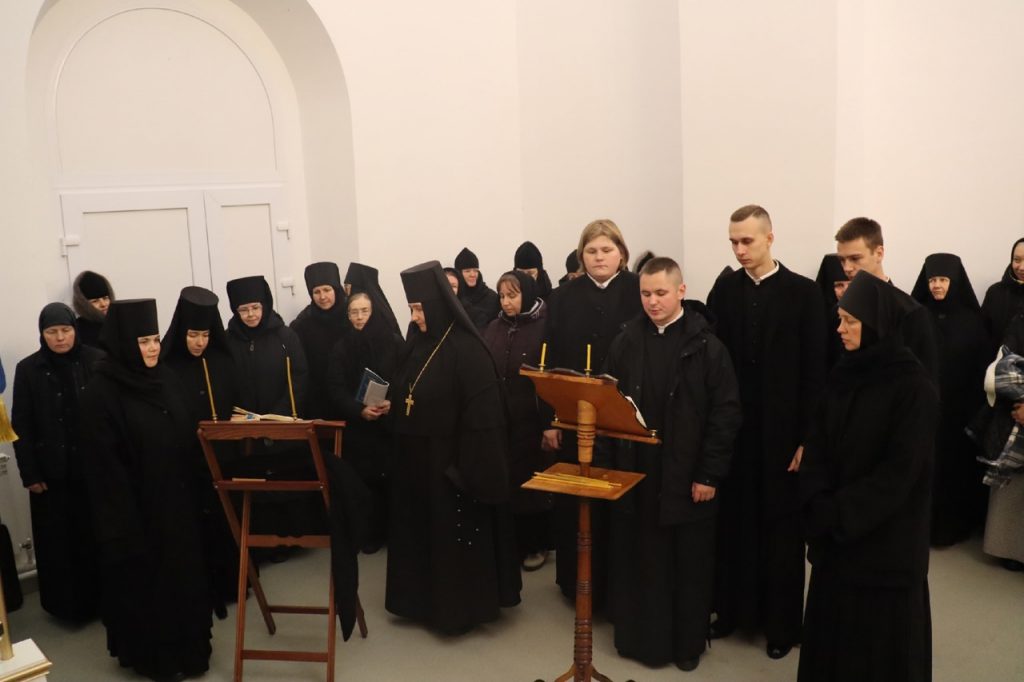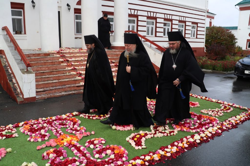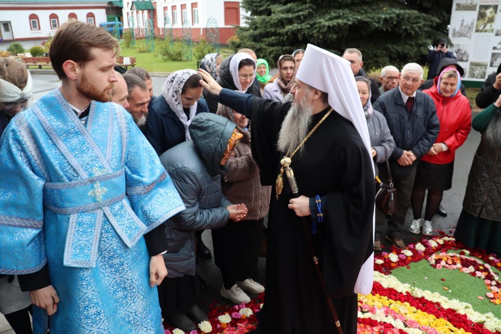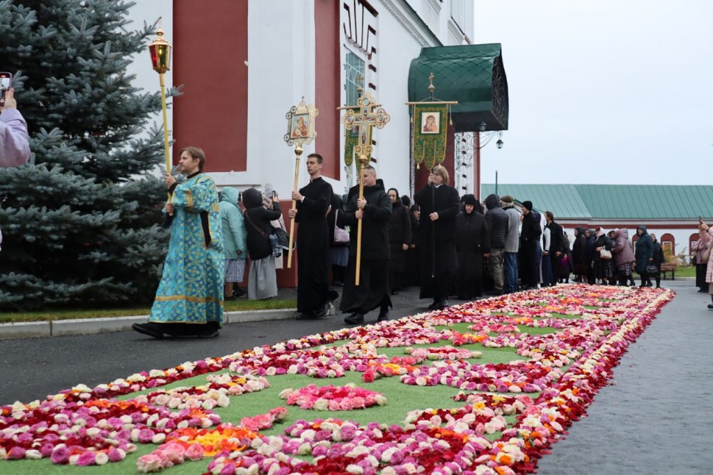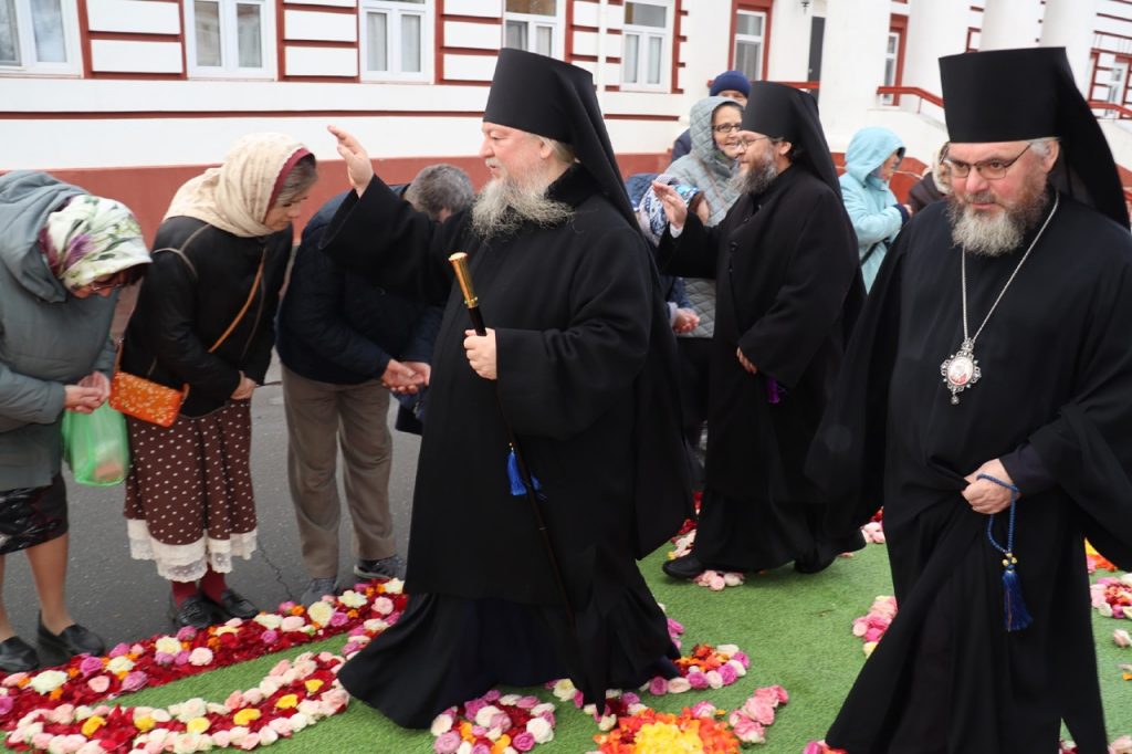 До начала архиерейской службы утром 16 октября в Трубчевском храме протоиереем Владимиром Мишагиным была совершена ранняя Божественная литургия, после которой клирик монастыря, протоиерей Вячеслав Абашин, совершил водосвятный молебен, после чего духовенство обители прошествовало крестным ходом до Успенского собора монастыря.