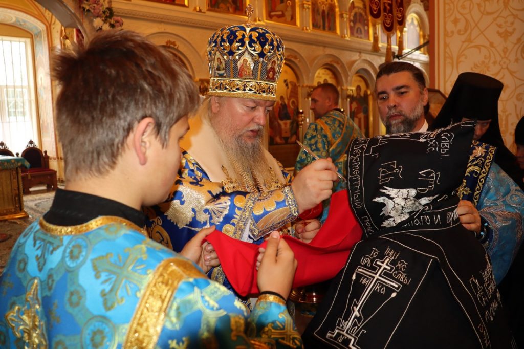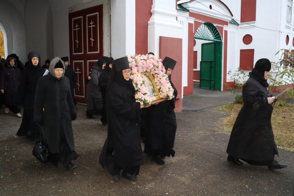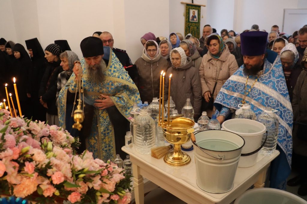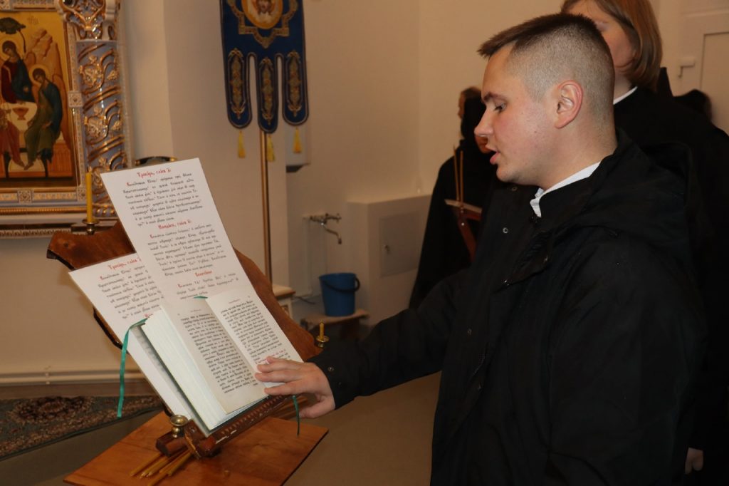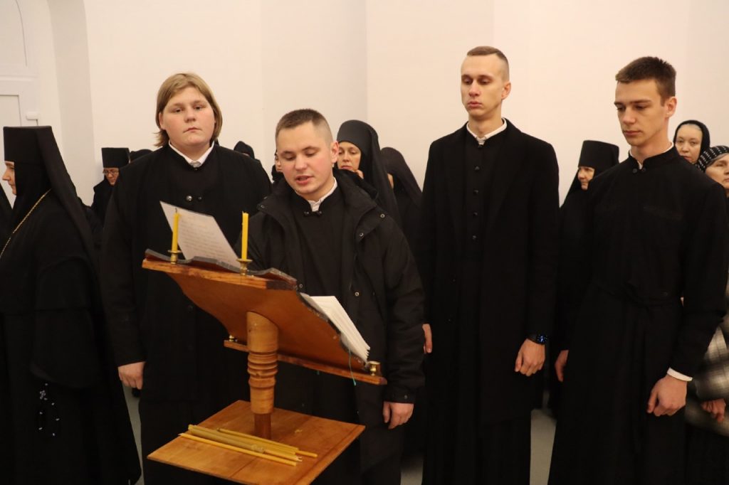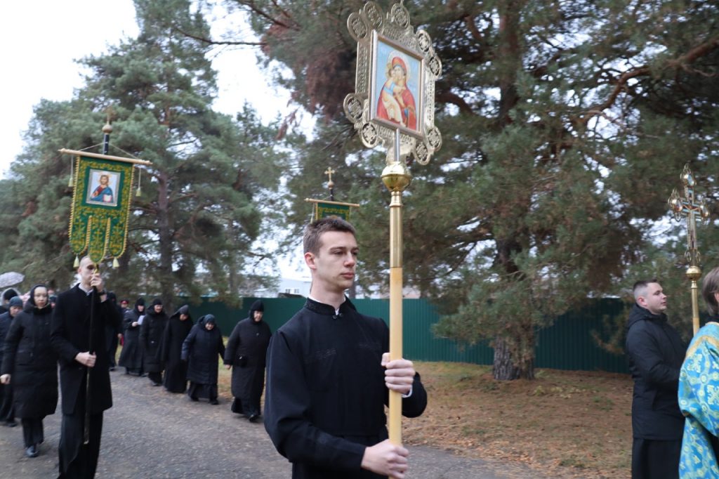 До начала архиерейской службы утром 16 октября в Трубчевском храме протоиереем Владимиром Мишагиным была совершена ранняя Божественная литургия, после которой клирик монастыря, протоиерей Вячеслав Абашин, совершил водосвятный молебен, после чего духовенство обители прошествовало крестным ходом до Успенского собора монастыря.