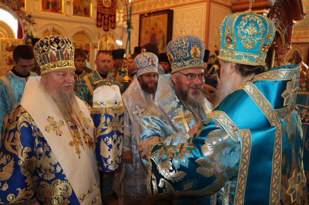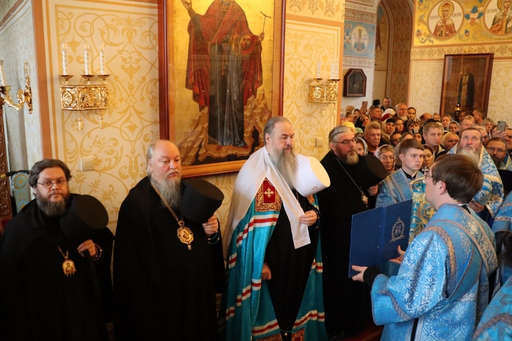 Проповедь по запричастном стихе произнёс клирик обители протоиерей Вячеслав Абашин. По отпусте Божественной Литургии было совершено славление Пресвятой Богородице перед чудотворной Трубчевской иконой Божией Матери и возглашено многолетие. Завершая праздничное Богослужение, епископ Митрофан приветствовал прибывших в обитель гостей, поблагодарил архипастырей за совместную молитву в этот праздничный день и обратился к пастве со словами поздравления. Игумения Иннокентия поблагодарила архипастырей за посещение обители и святые молитвы и преподнесла подарочное издание новой книги «Возрождение Сканова монастыря» и вышитые Литургические наборы, изготовленный в золотошвейной мастерской обители. После этого Высокопреосвященный митрополит Серафим поздравил собравшихся с праздником. Владыка преподнёс в дар обители большую старинную икону Двунадесятых праздников в окладе. Матушке Иннокентии митрополит Серафим подарил наперсный крест из перламутра.