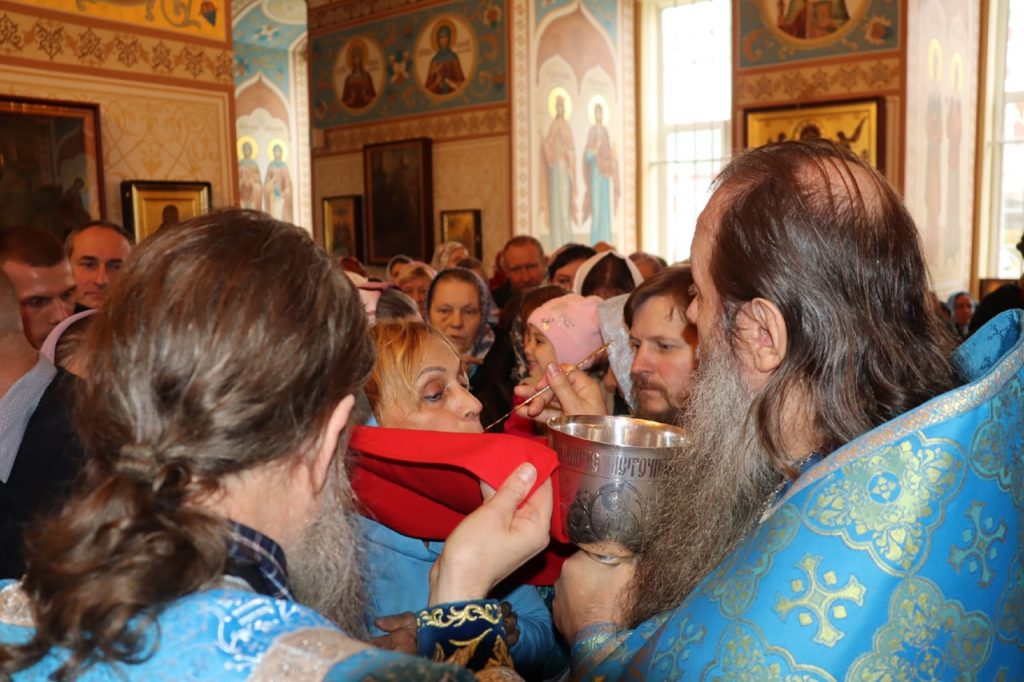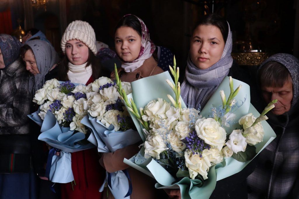 За богослужением молились настоятельница Троице-Сканова епархиального женского монастыря с. Сканово Наровчатского района, игумения Иннокентия (Татаркина), с сестрами обители, а также настоятельница Скрябинского Вознесенского женского монастыря, игумения Варвара (Соколова), настоятельница Архиерейского подворья с. Шейн-Майдан Атяшевского района монахиня Серафима (Туманина), а также старшая сестра Балашовского Покровского женского монастыря монахиня Аполлинария (Иванова) с сёстрами.