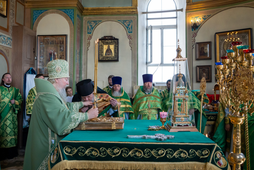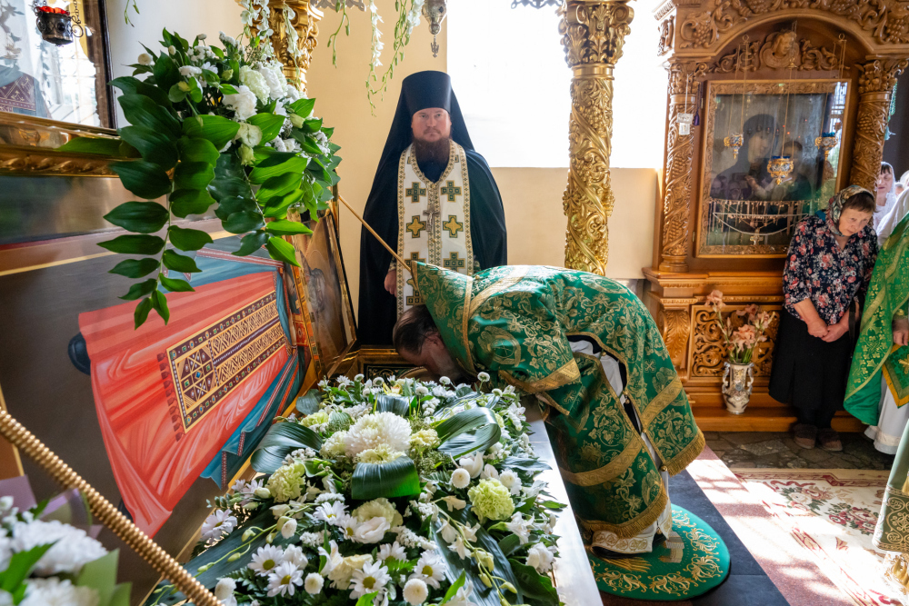 По отпусте литургии было совершено славление у раки с мощами священноисповедника Иоанна Оленевского и провозглашено многолетие.
