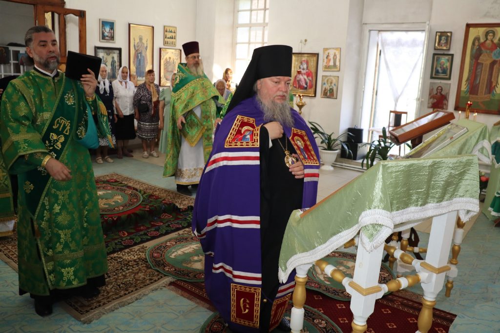 Его Преосвященству сослужили: иеромонах Амвросий (Макаров), врио. секретаря Епархиального Управления; настоятель храма протоиерей Александр Белов; настоятель храма Покрова Пресвятой Богородицы р.п. Башмаково иерей Николай Попов; клирик кафедрального собора Архангела Михаила г. Сердобска иеродиакон Иннокентий (Ганин).