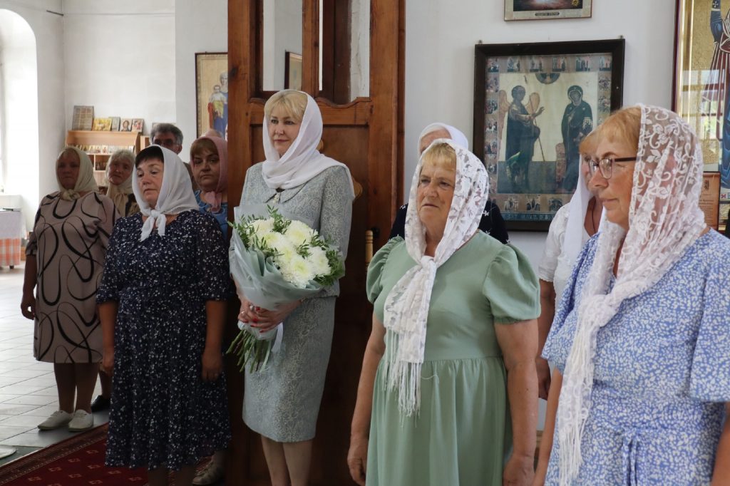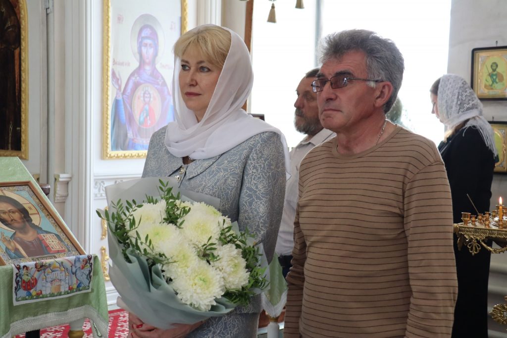 К словам благодарности присоединилась Глава администрации Башмаковского района Тамара Анатольевна Павлуткина, которая в знак признательности преподнесла Владыке Митрофану букет цветов.