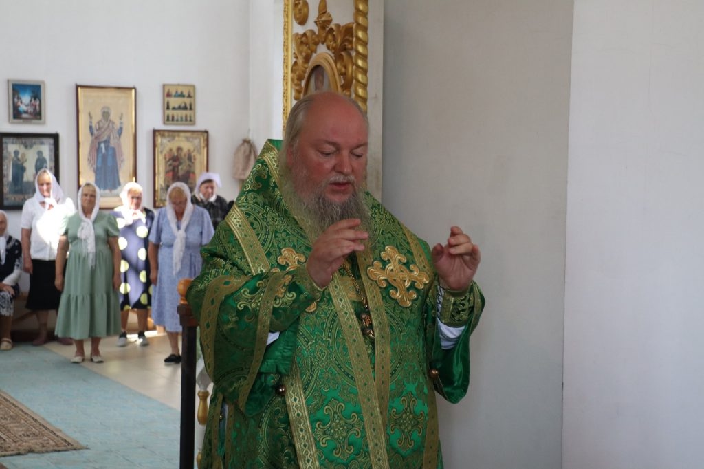 1 августа 2025 года, в пятницу седмицы 8-ой по Пятидесятнице, в день празднования обретения мощей преподобного Серафима Саровского, чудотворца (1903), епископ Сердобский и Спасский Митрофан совершил Божественную литургию в церкви Знамение Пресвятой Богородицы с.Знаменское Башмаковского района.