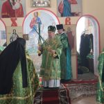 По окончании Литургии архиерей и духовенство совершили славление блаженной Ксении Петербургской перед её иконой.