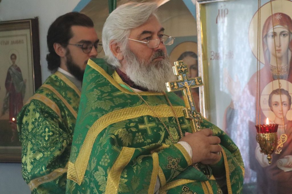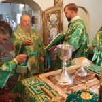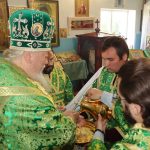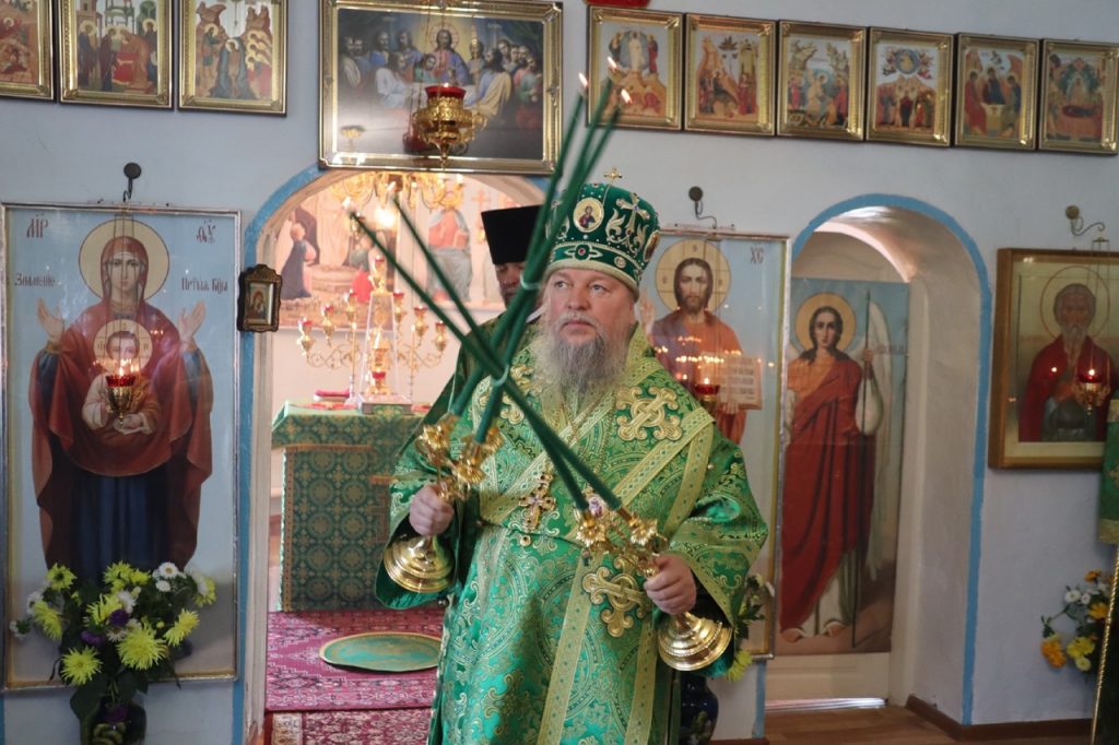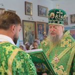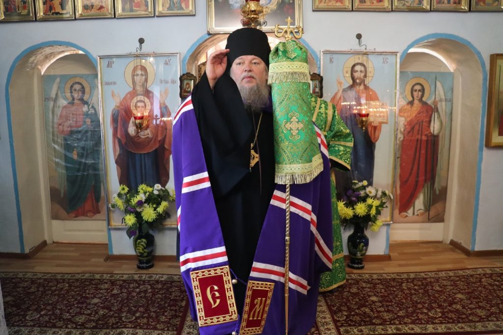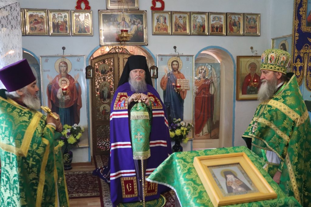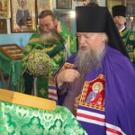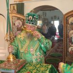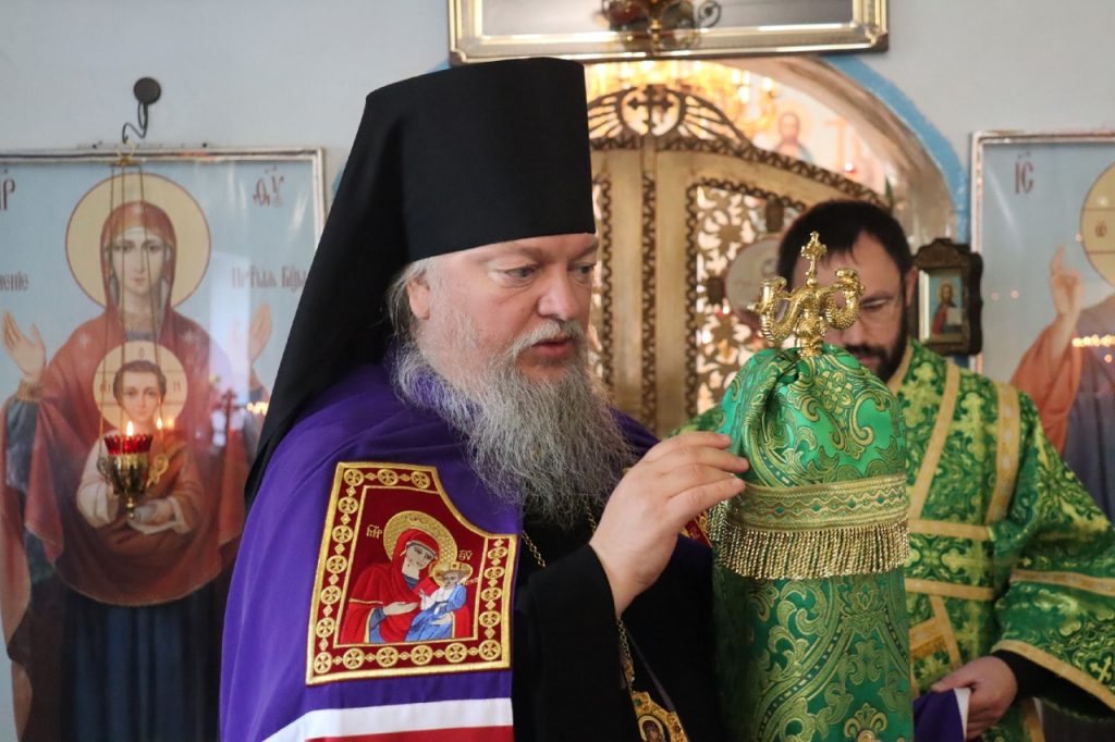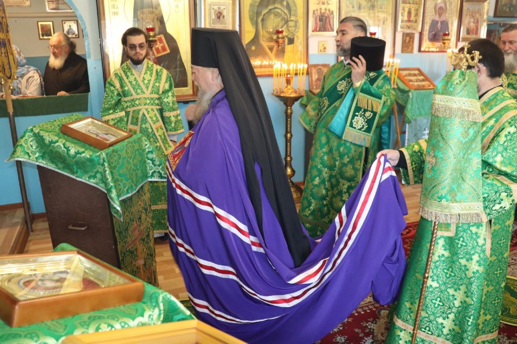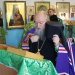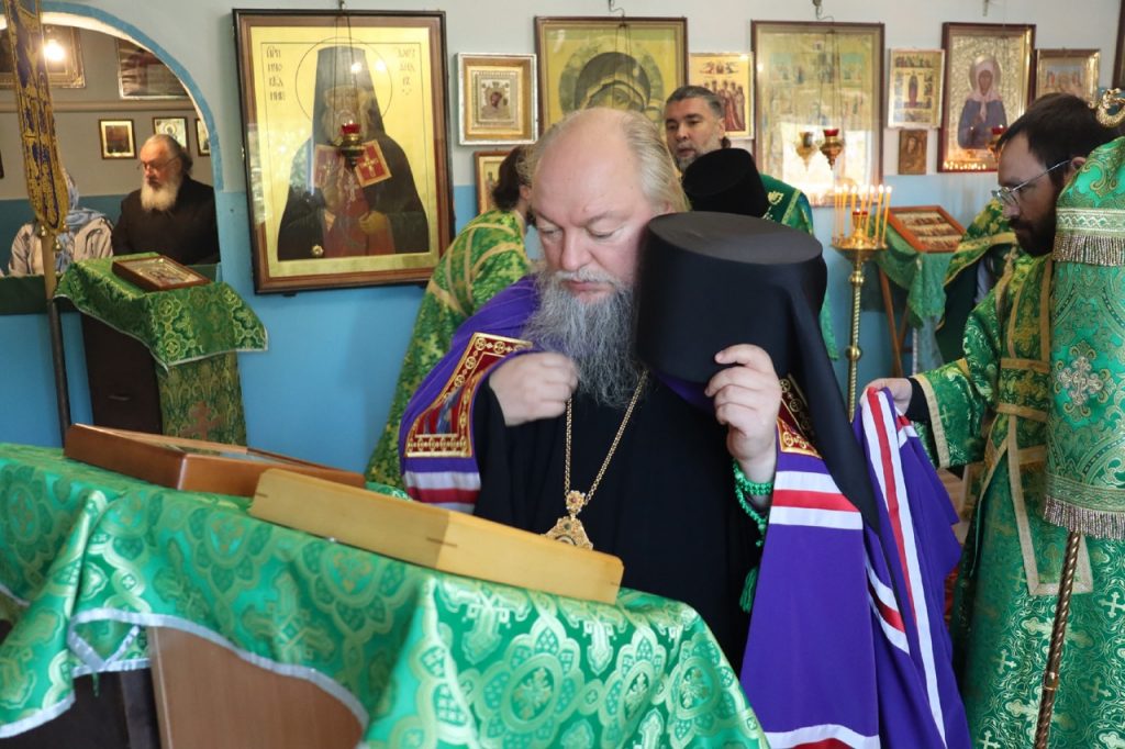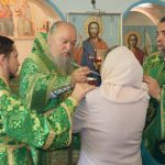 Затем Преосвященнейший Владыка Митрофан поздравил всех присутствующих с днем памяти преподобноисповедника Александра Санаксарского и обратился к верующим со словами проповеди.