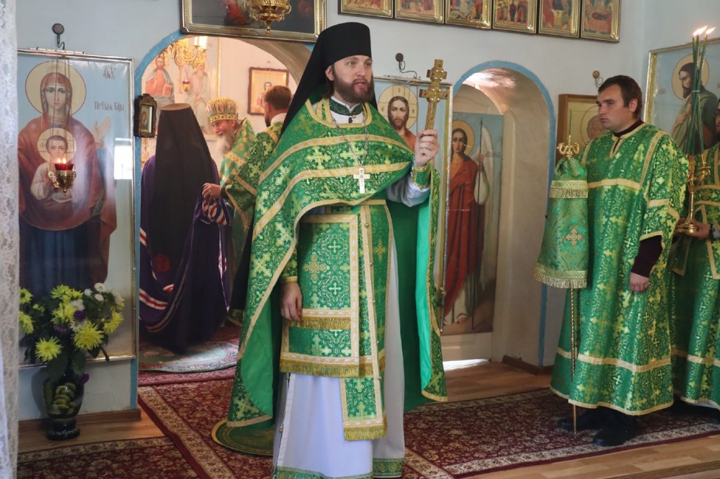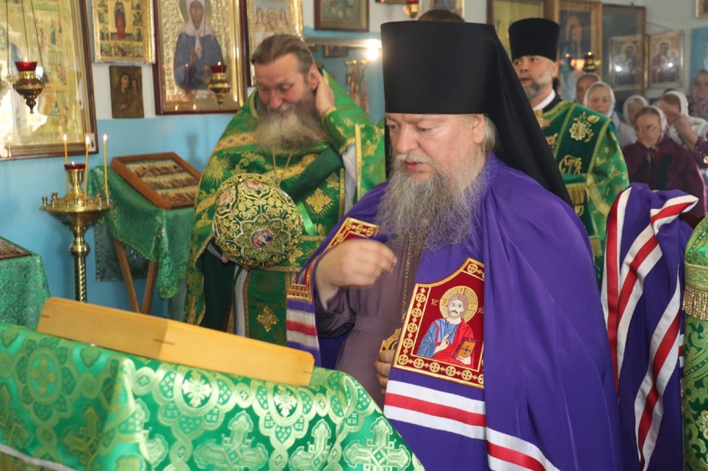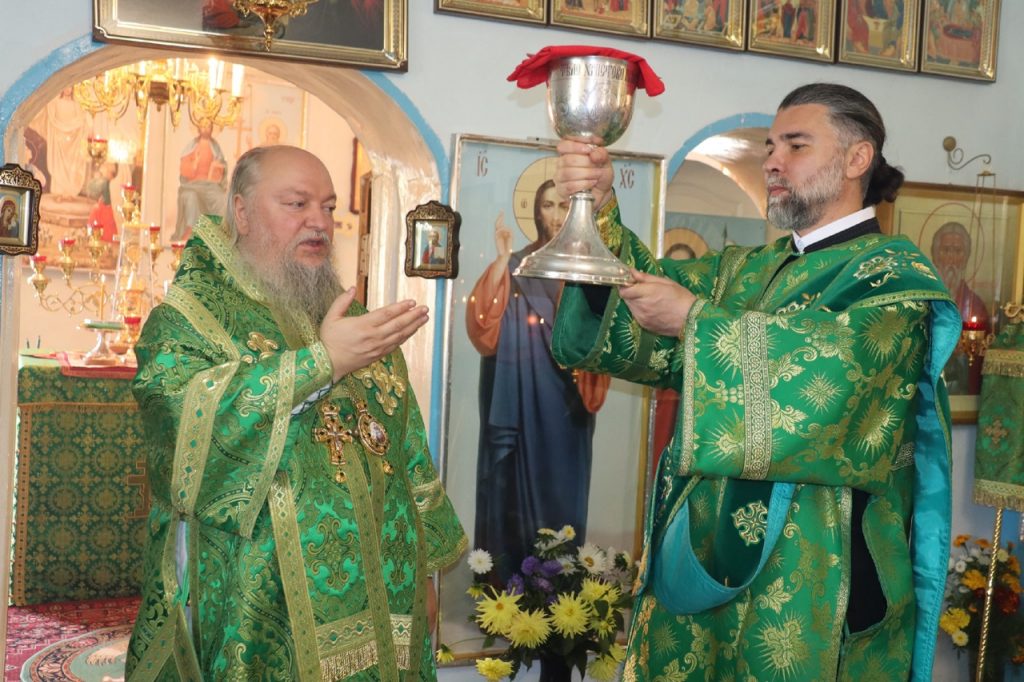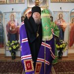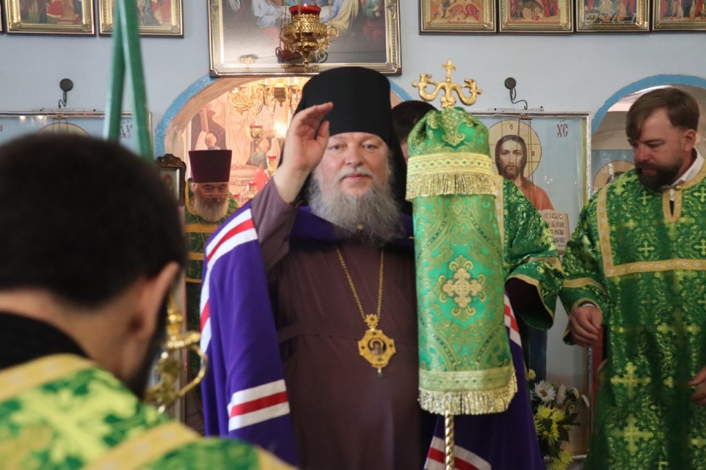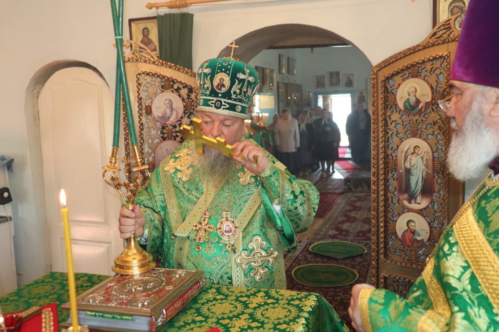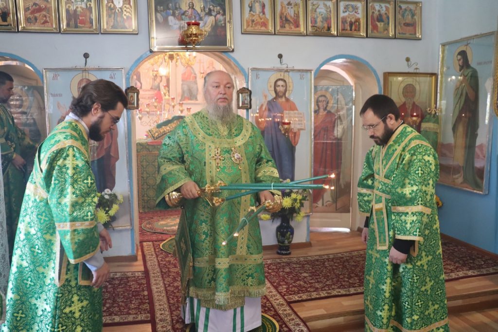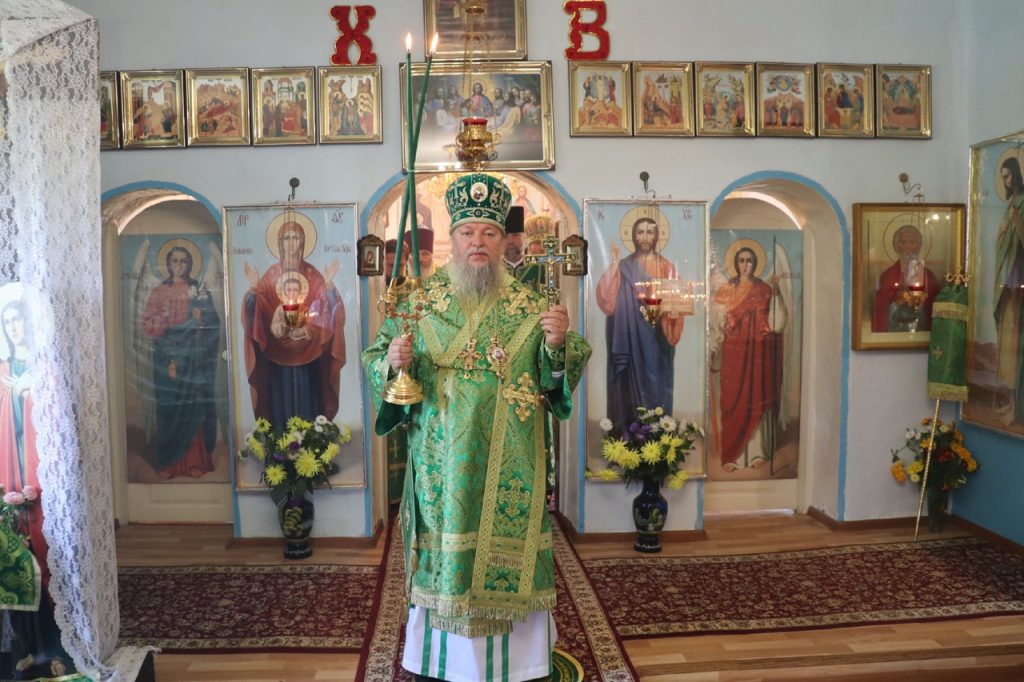 Затем Преосвященнейший Владыка Митрофан поздравил всех присутствующих с днем памяти преподобноисповедника Александра Санаксарского и обратился к верующим со словами проповеди.