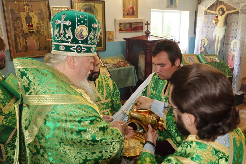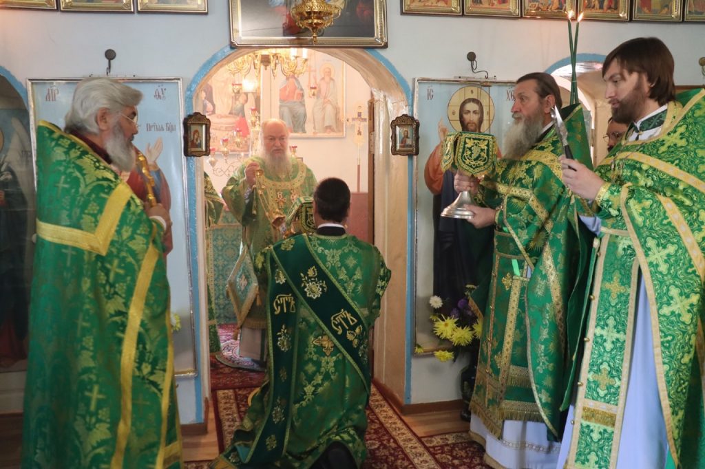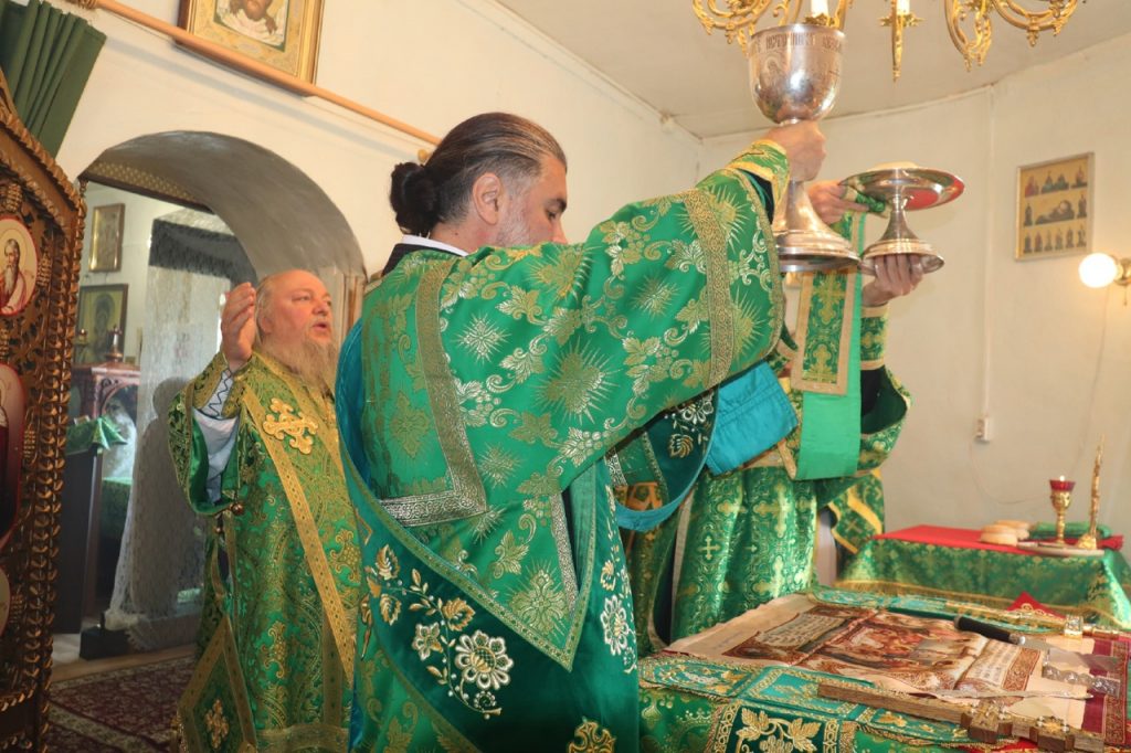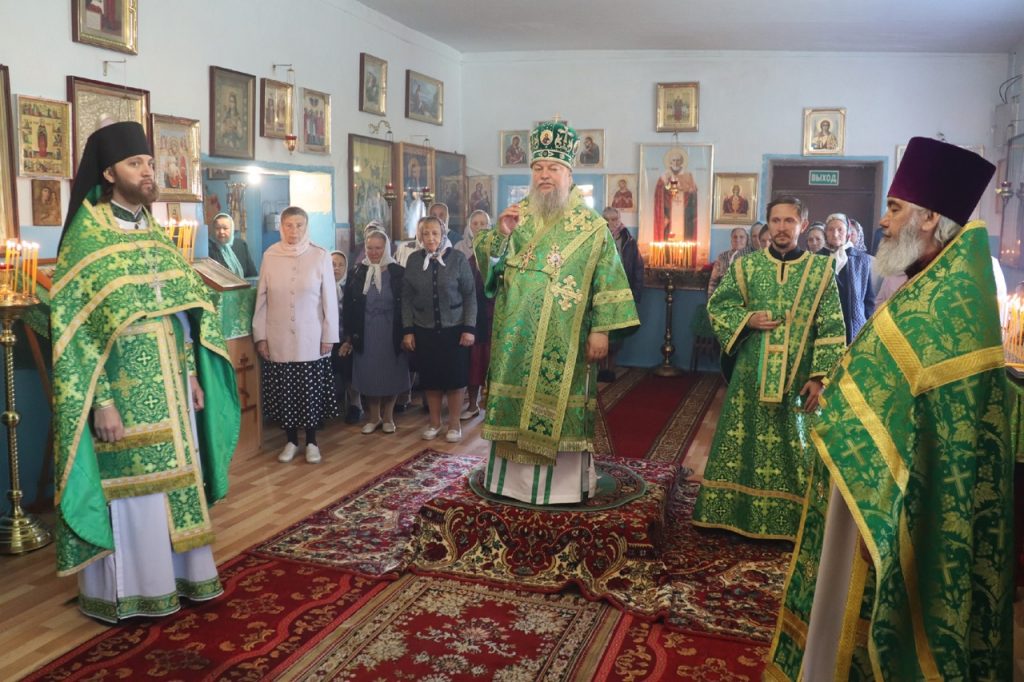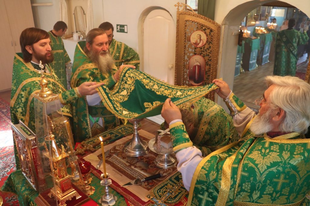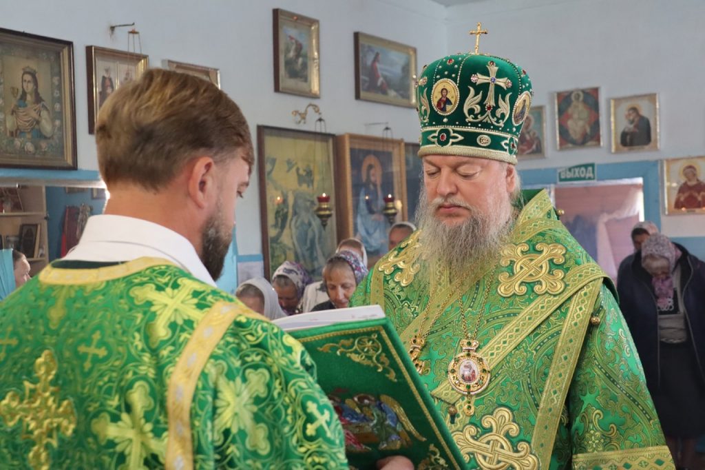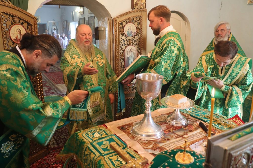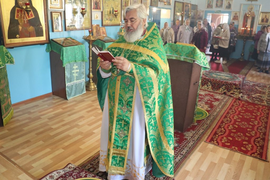Затем Преосвященнейший Владыка Митрофан поздравил всех присутствующих с днем памяти преподобноисповедника Александра Санаксарского и обратился к верующим со словами проповеди.