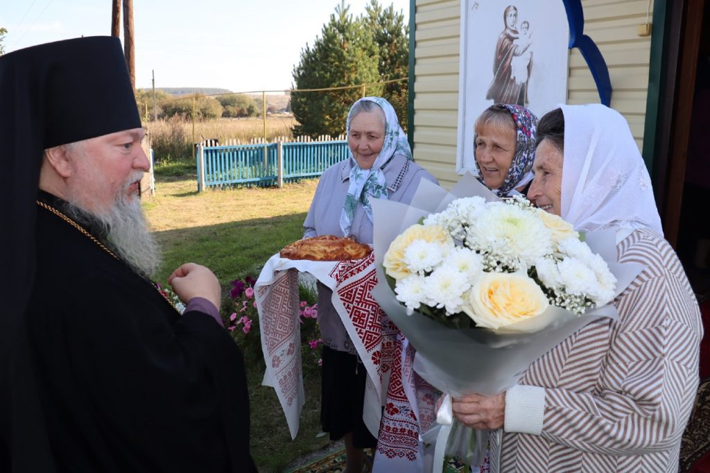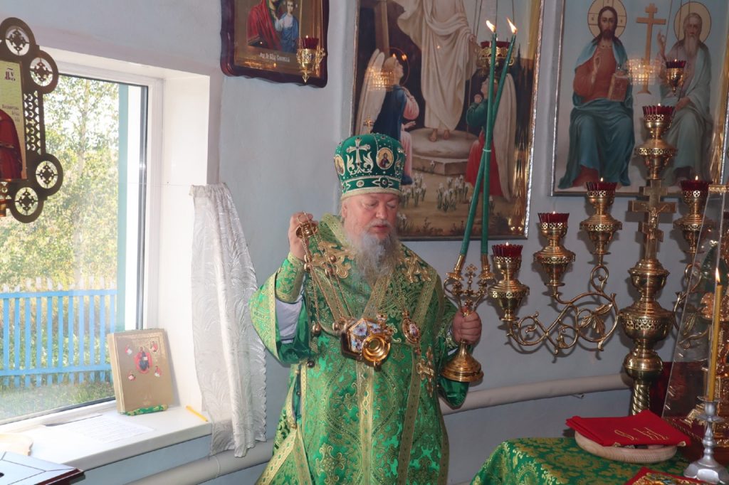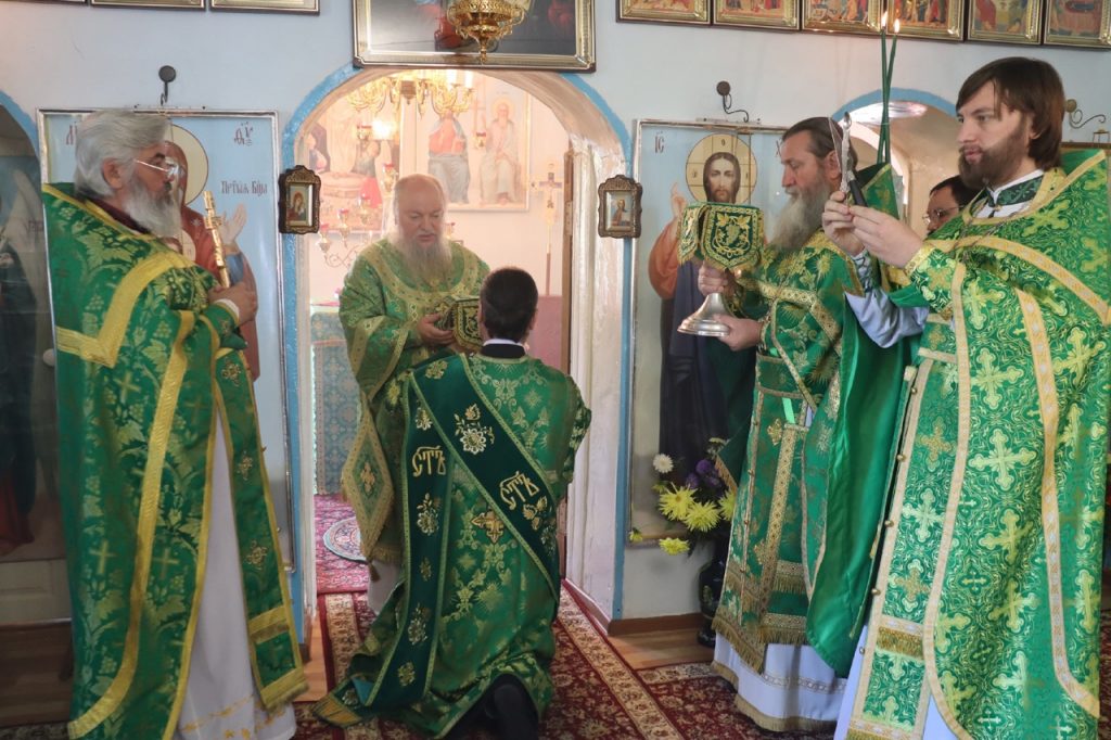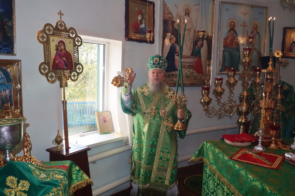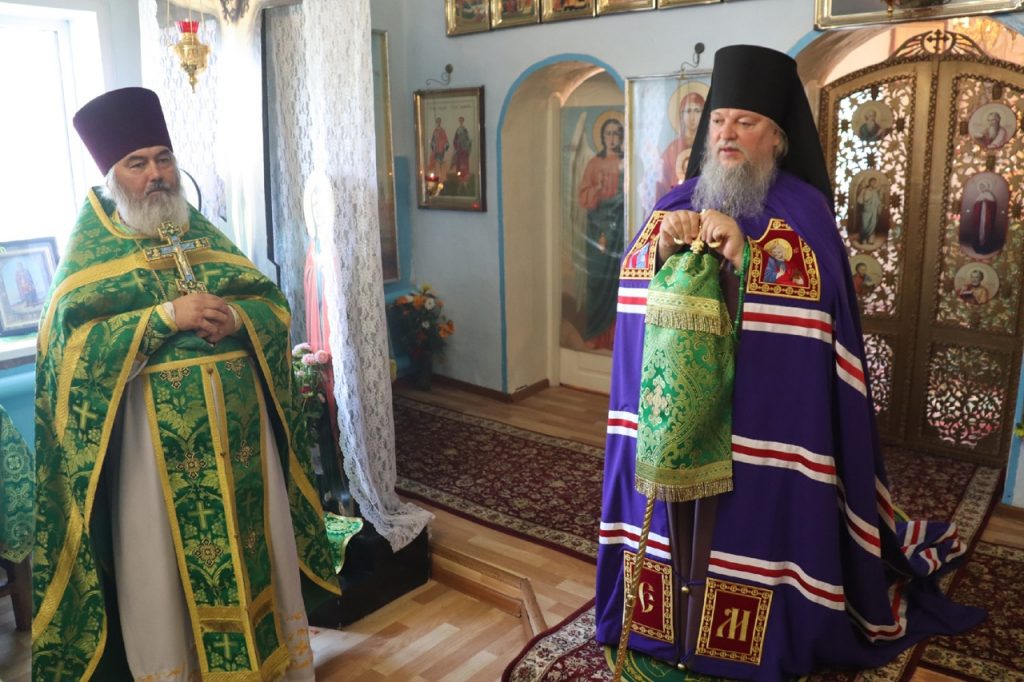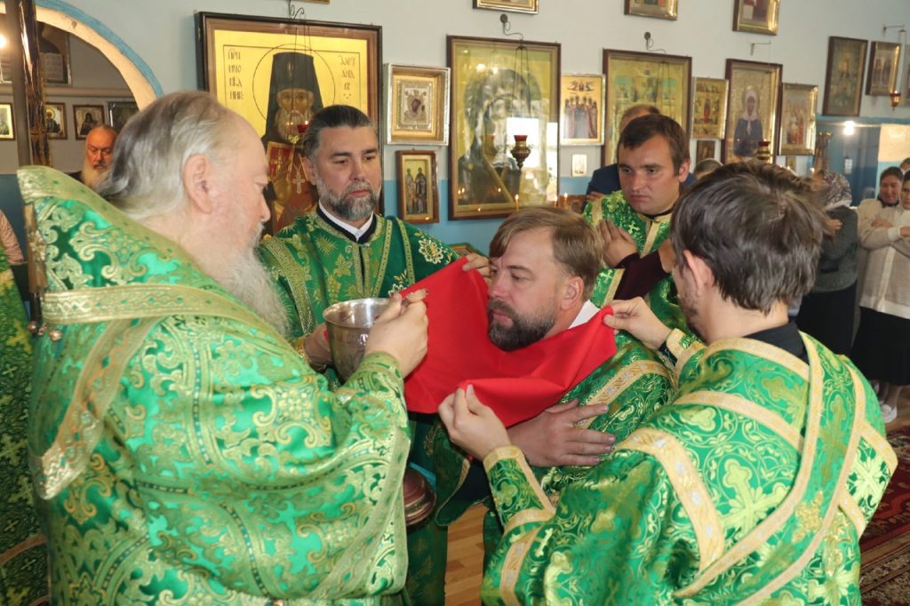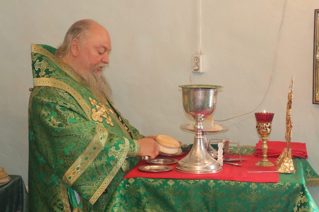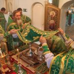 Затем Преосвященнейший Владыка Митрофан поздравил всех присутствующих с днем памяти преподобноисповедника Александра Санаксарского и обратился к верующим со словами проповеди.