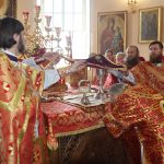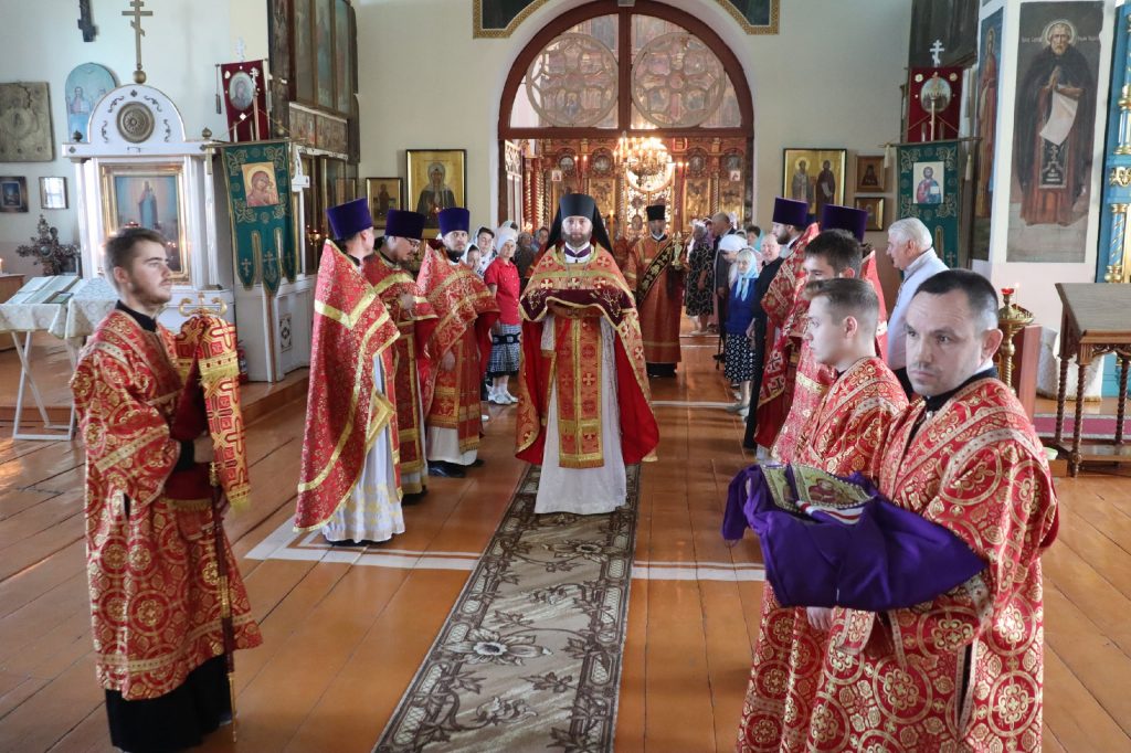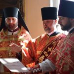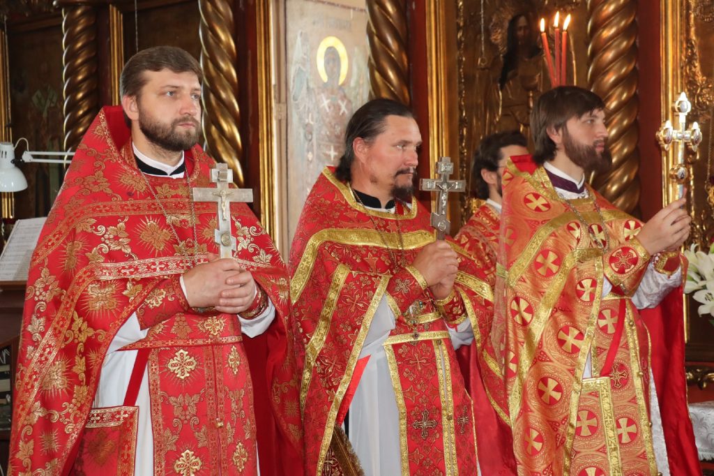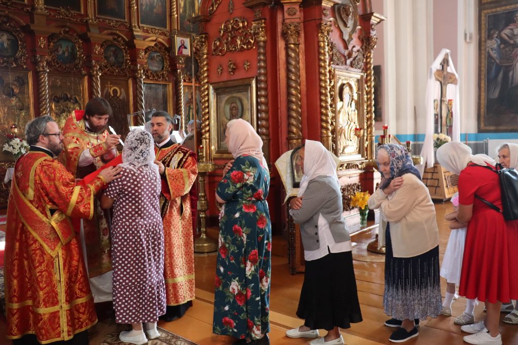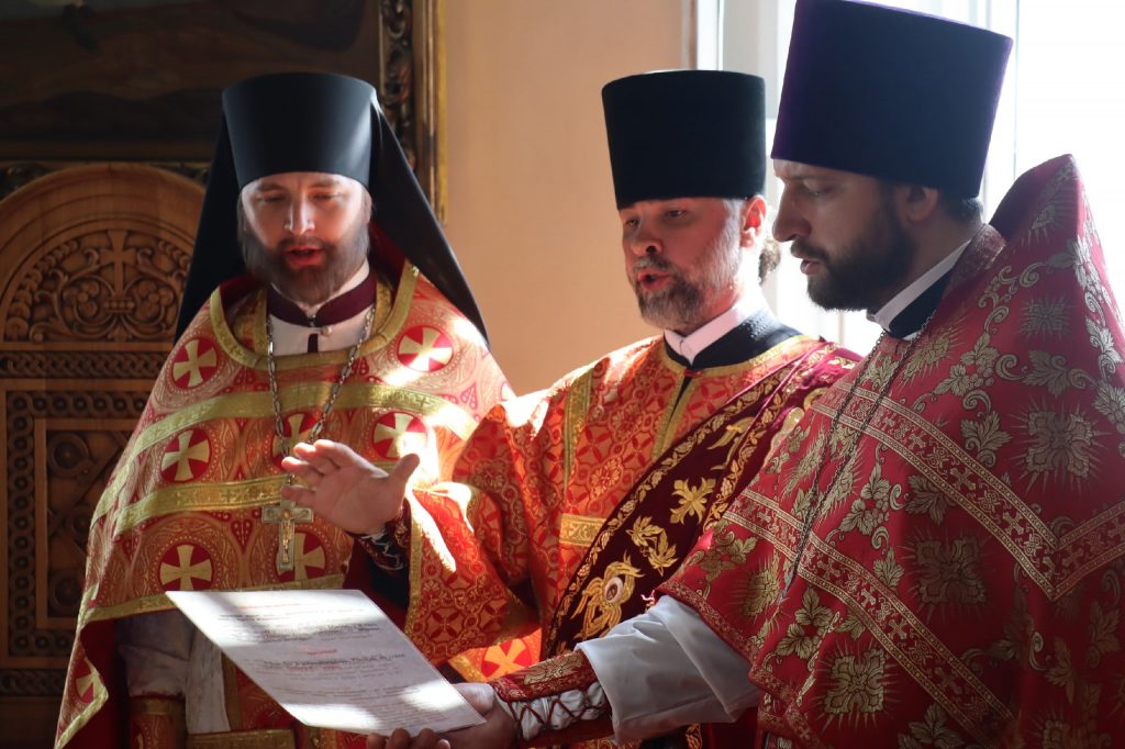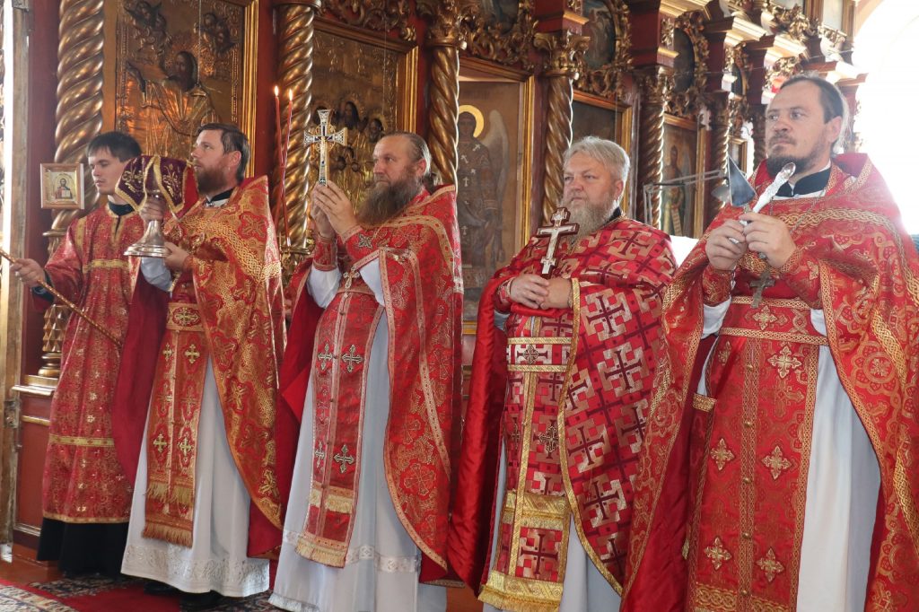 Его Преосвященству сослужили: иеромонах Амвросий (Макаров), врио. секретаря Епархиального Управления; благочинный Спасского округа, настоятель собора иерей Сергий Третьяков; настоятель храма Покрова Пресвятой Богородицы с. Мордовский Пимбур Зубово-Полянского района РМ протоиерей Александр Чикиров (Краснослободская епархия); настоятель Михайло-Архангельского храма с.Баранчеевка Спасского района протоиерей Сергий Агейкин; настоятель Молитвенного дома в честь иконы Божией Матери «Воспитание» г.Спасска иерей Иоанн Голованов; благочинный Вадинского округа, настоятель церкви Михаила Архангела с. Вадинск иерей Константин Проскуряков; клирики Спасского благочиния иерей Артемий Тодчук и иерей Георгий Кузнецов; клирик кафедрального собора Архангела Михаила г. Сердобска иеродиакон Иннокентий (Ганин); клирик Костромской епархии диакон Сергий Бахтин.