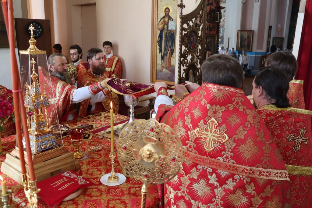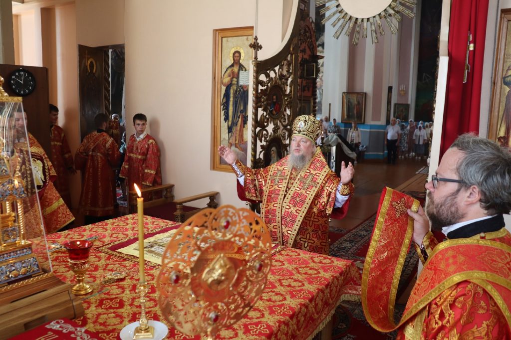11 июля 2025 года, в пятницу седмицы 5-й по Пятидесятнице, в день памяти священномученика диакона Григория Самарина, епископ Сердобский и Спасский Митрофан совершил Божественную литургию в соборе Вознесения Господня г.Спасска.