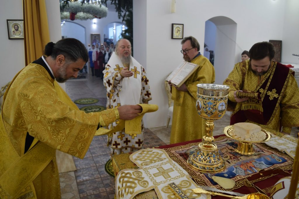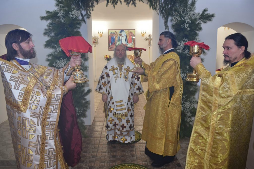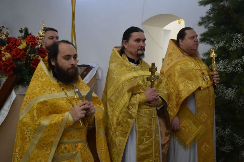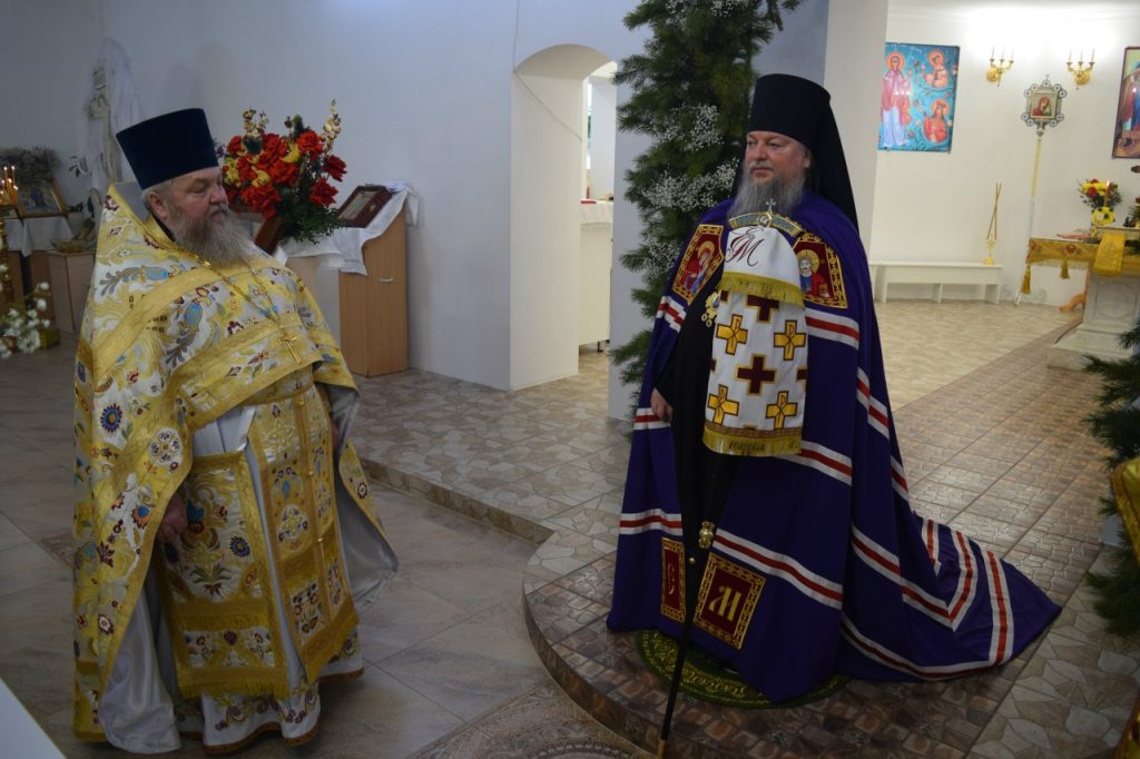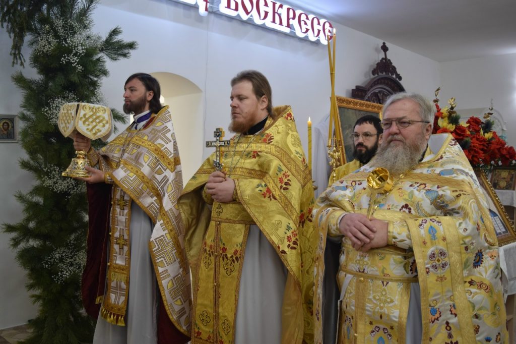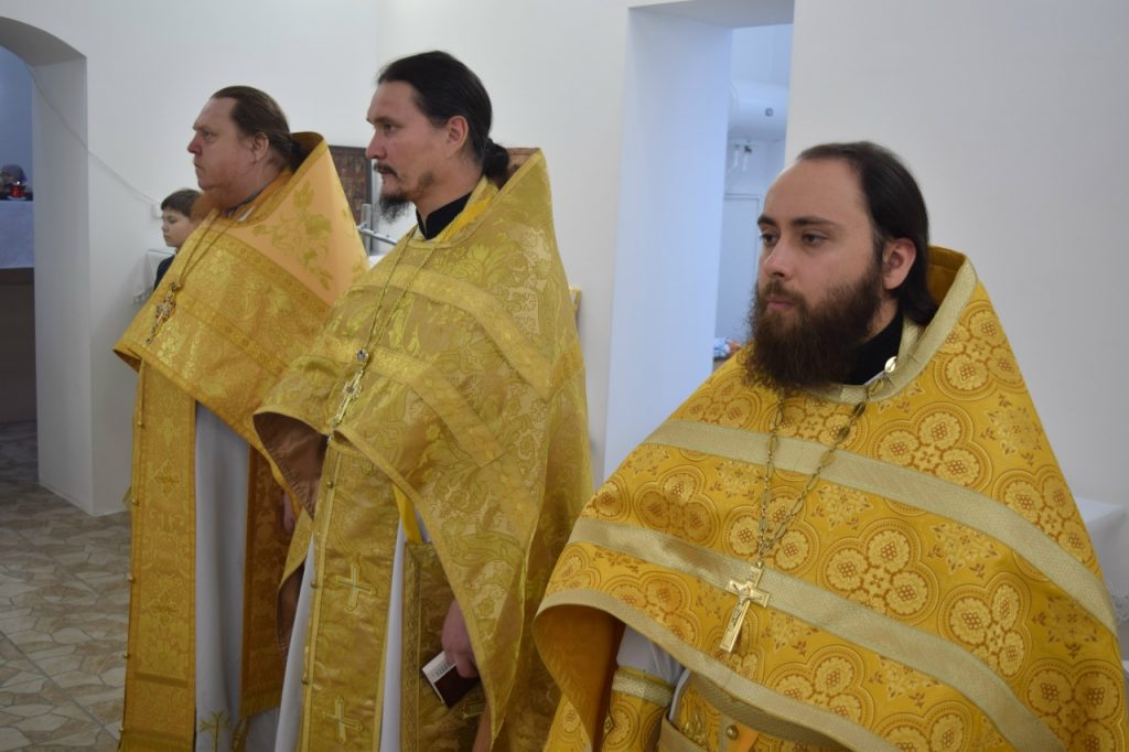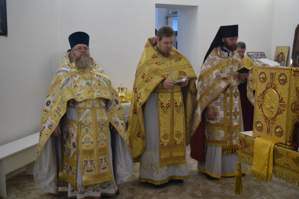 Его Преосвященству сослужили: иеромонах Амвросий (Макаров), врио. секретаря Епархиального Управления; настоятель Молитвенного дома в честь иконы Божией Матери «Воспитание» иерей Иоанн Голованов; благочинный Земетчинского округа, настоятель храма Рождества Христова п.г.т. Земетчино протоиерей Олег Мамонов; клирик Краснослободской епархии (Республика Мордовия) протоиерей Александр Чикиров; и.о.наместника Сканова Пещерного мужского монастыря прпп. Антония и Феодосия Печерских с. Сканово Наровчатского района иеромонах Ювеналий (Жучков);  благочинный Спасского округа, руководитель епархиального миссионерского отдела, настоятель собора Вознесения Господня г.Спасска иерей Святослав Бобко; клирик кафедрального собора Архангела Михаила г. Сердобска иеродиакон Иннокентий (Ганин); клирик храма Рождества Христова р.п. Земетчино диакон Сергий Сурков.