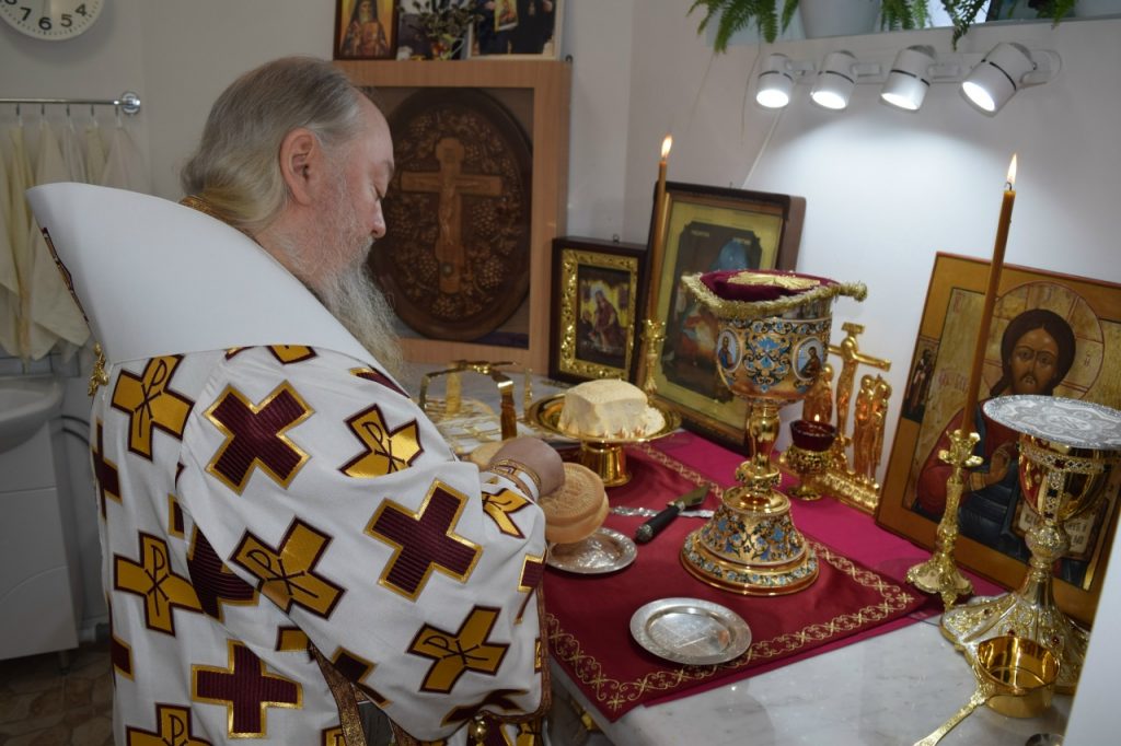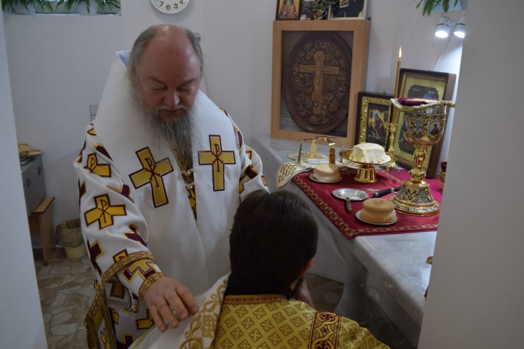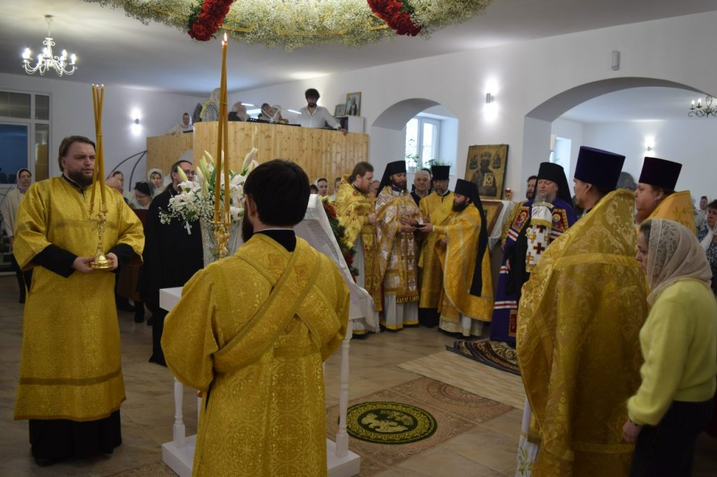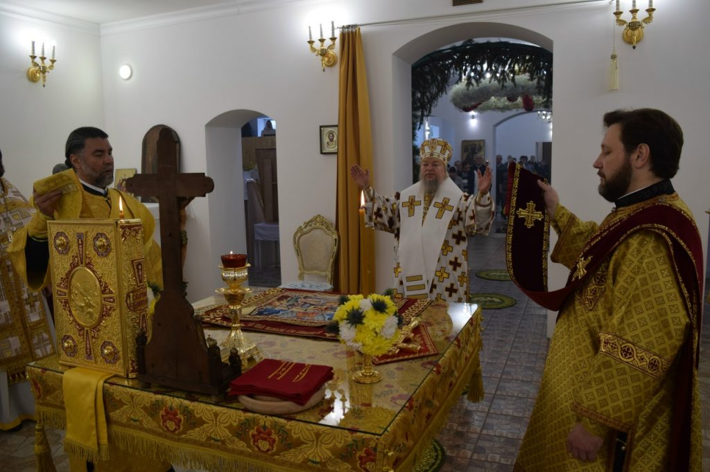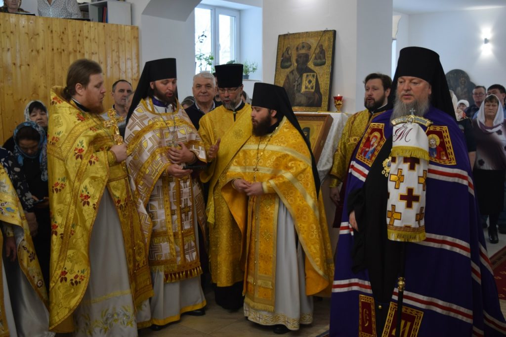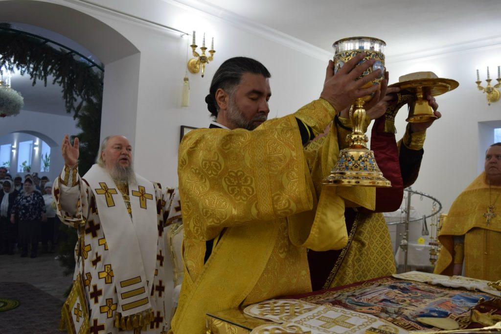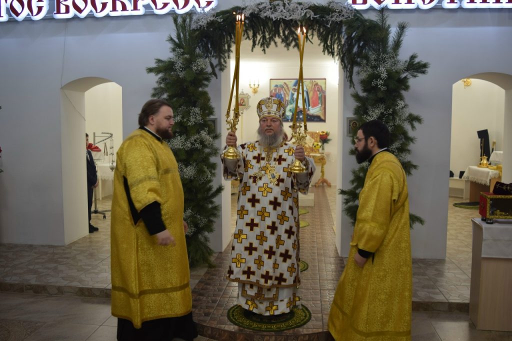 Его Преосвященству сослужили: иеромонах Амвросий (Макаров), врио. секретаря Епархиального Управления; настоятель Молитвенного дома в честь иконы Божией Матери «Воспитание» иерей Иоанн Голованов; благочинный Земетчинского округа, настоятель храма Рождества Христова п.г.т. Земетчино протоиерей Олег Мамонов; клирик Краснослободской епархии (Республика Мордовия) протоиерей Александр Чикиров; и.о.наместника Сканова Пещерного мужского монастыря прпп. Антония и Феодосия Печерских с. Сканово Наровчатского района иеромонах Ювеналий (Жучков);  благочинный Спасского округа, руководитель епархиального миссионерского отдела, настоятель собора Вознесения Господня г.Спасска иерей Святослав Бобко; клирик кафедрального собора Архангела Михаила г. Сердобска иеродиакон Иннокентий (Ганин); клирик храма Рождества Христова р.п. Земетчино диакон Сергий Сурков.