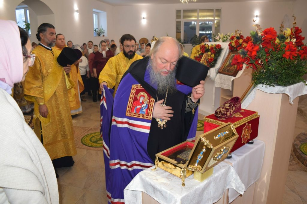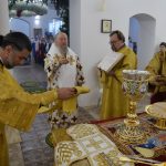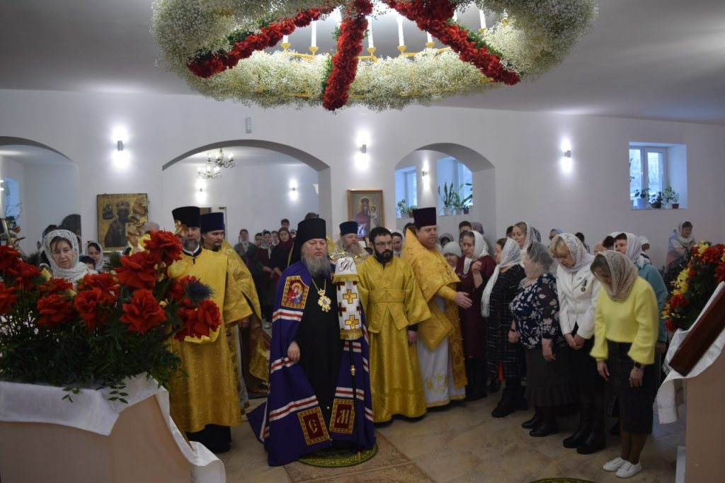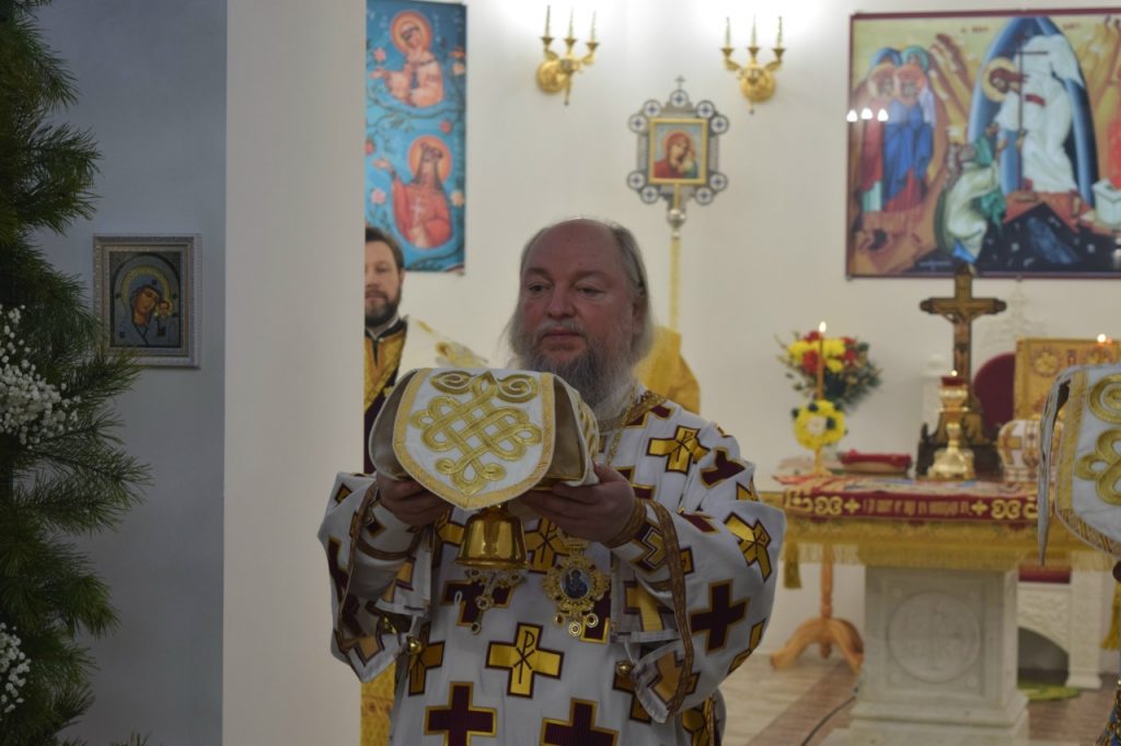 Затем настоятель храма  иерей Иоанн Голованов поблагодарил Преосвященнейшего Владыку Митрофана за визит и общую церковную молитву в день престольного праздника.