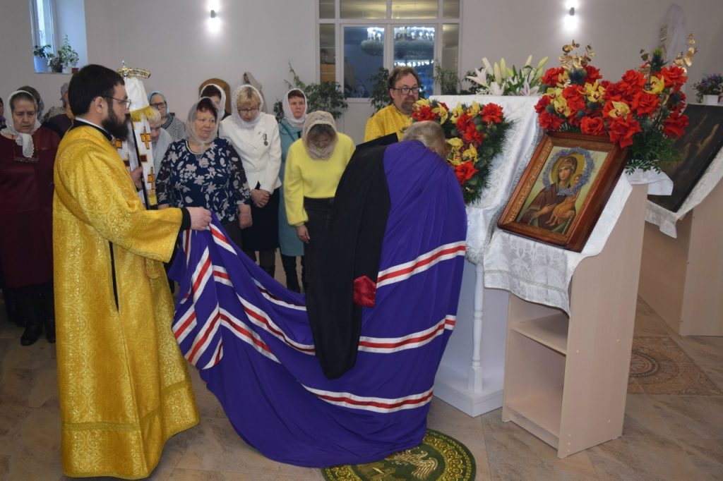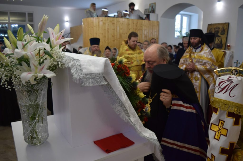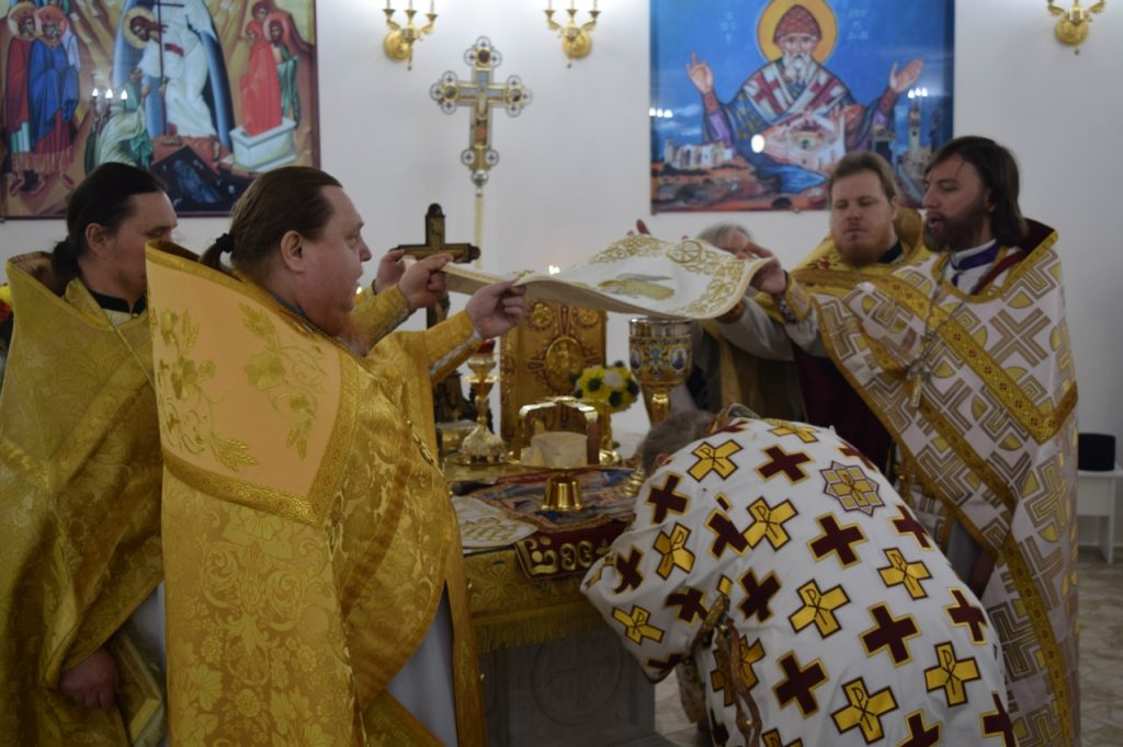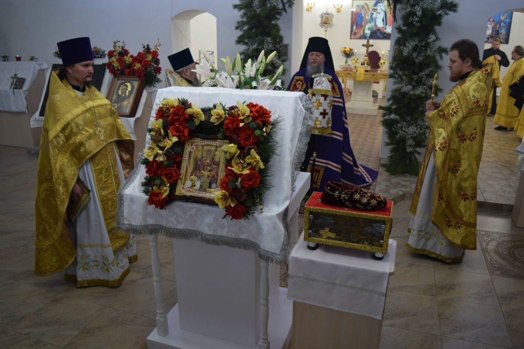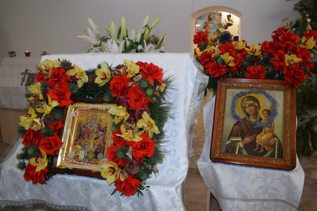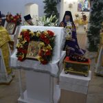 После богослужения было совершено славление с выносом башмачка святителя Спиридона, епископа Тримифунтского, — окрестной храмовой святыни. В храме находится также особо почитаемые христианские реликвии – частица мощей святителя Спиридона и частица пояса небесного покровителя.