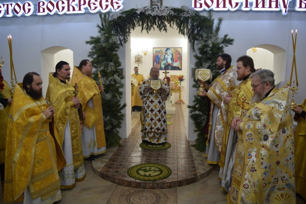 25 декабря 2025 года, в четверг Седмицы 29-й по Пятидесятнице, в день памяти свт. Спиридона, епископа Тримифунтского, чудотворца (ок. 348), епископ Сердобский и Спасский Митрофан совершил Божественную литургию в нижнем приделе храма Воскресения Христова г.Спасска, который освящен в честь глубокопочитаемого святителя Спиридона.
