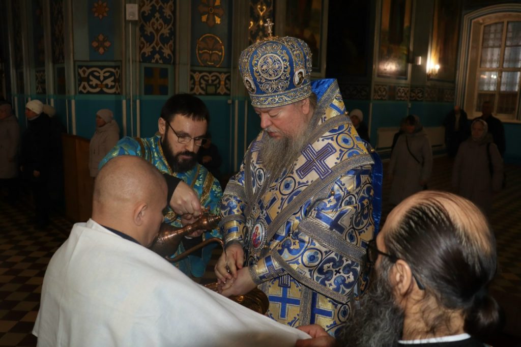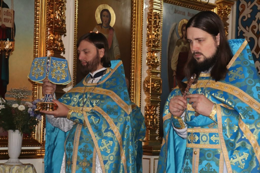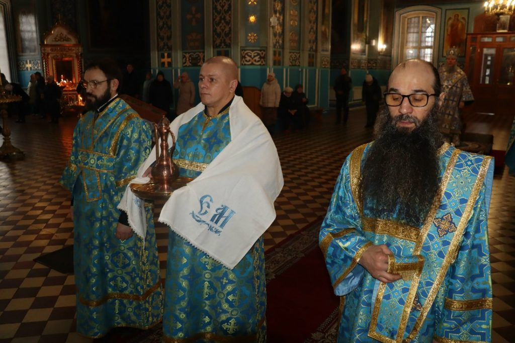 Его Преосвященству сослужили: иеромонах Амвросий (Макаров), врио. секретаря Епархиального Управления; ключарь кафедрального собора Архангела Михаила г.Сердобска, епархиальный древлехранитель иерей Роман Турецких; клирик собора и руководитель епархиального отдела религиозного образования и катехизации иерей Александр Федин; иеродиакон Иннокентий (Ганин), диакон Владимир Эрекайкин.