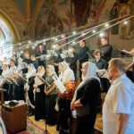Богослужебные песнопения исполнил Сводный хор Саратовской митрополии под управлением регентов Антонины Александровны Коньковой, Михаила Евгеньевича Толчина, Филиппа Дмитриевича Павлова.