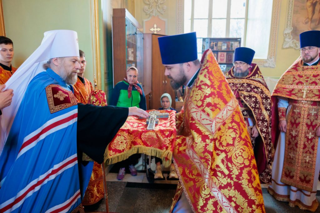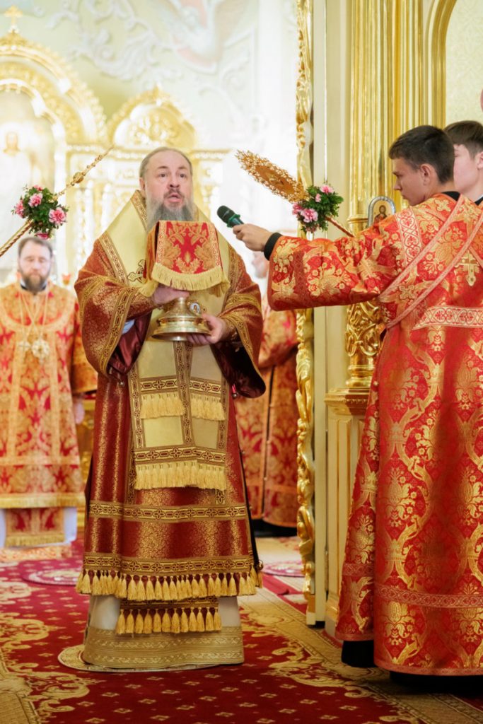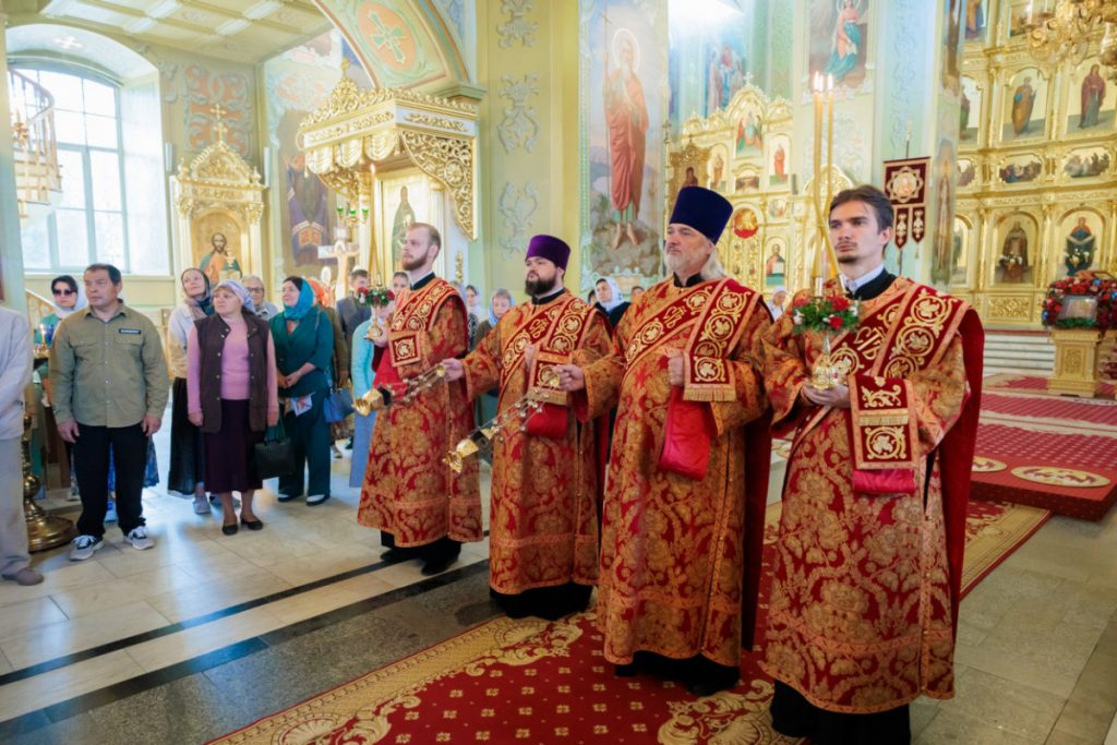 Во время Божественной литургии было оглашено послание митрополита Игнатия по случаю празднования Собора Саратовских святых.