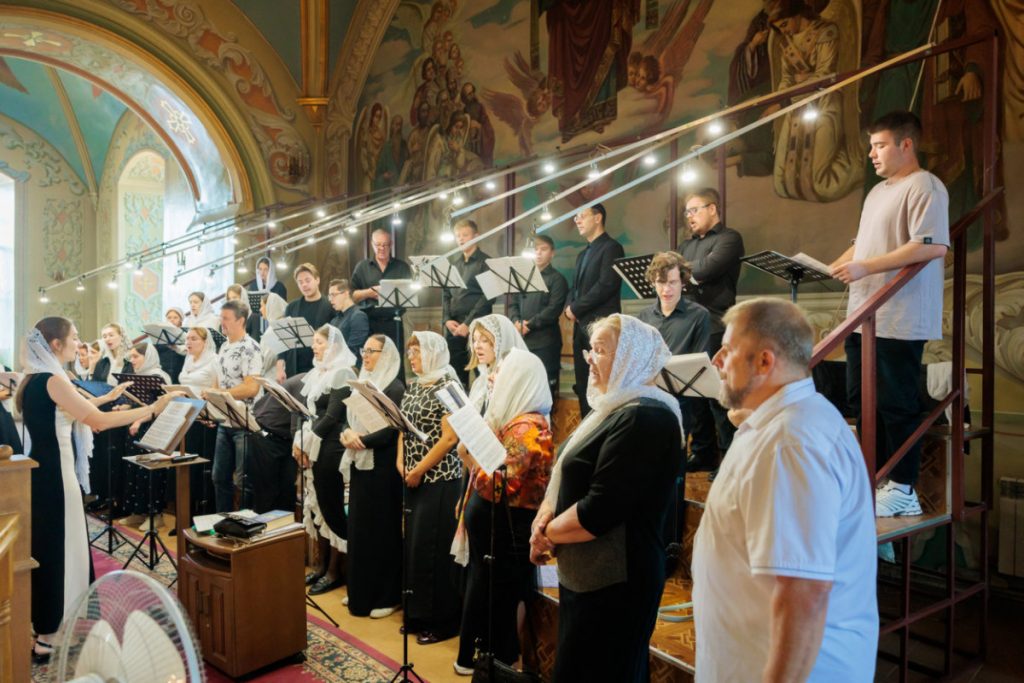 Богослужебные песнопения исполнил Сводный хор Саратовской митрополии под управлением регентов Антонины Александровны Коньковой, Михаила Евгеньевича Толчина, Филиппа Дмитриевича Павлова.