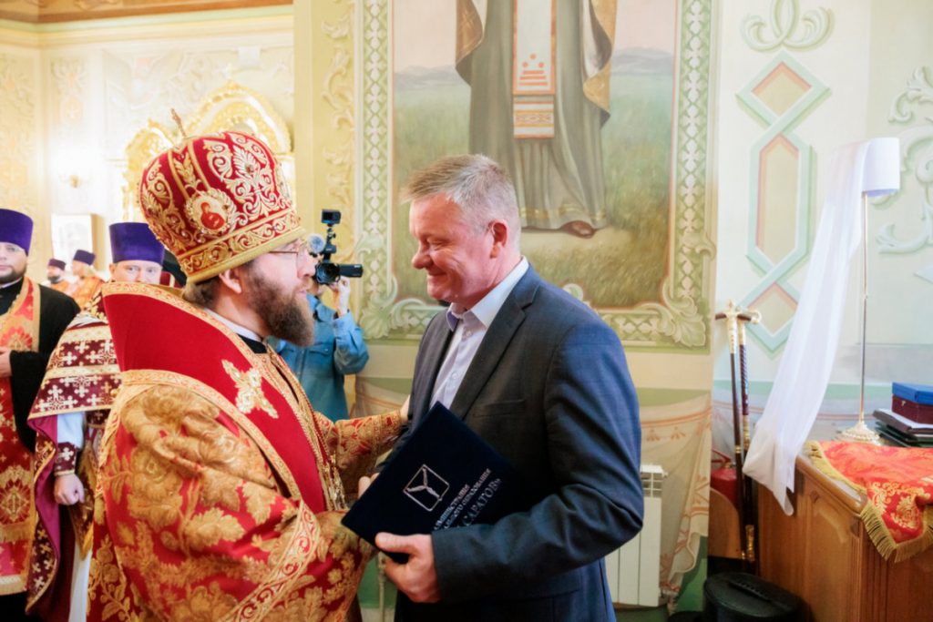Владыка Игнатий поздравил благотворителя Покровского собора и других саратовских храмов, председателя Совета директоров Рязанского завода плавленых сыров Михаила Викторовича Мартынова с 65-летием. Во внимание к благотворительной помощи Саратовской епархии Михаил Викторович был удостоен медали Саратовской митрополии в честь преподобномученицы Софии.