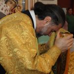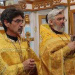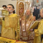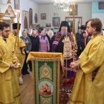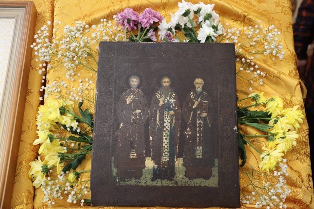 По отпусте Литургии было совершено славление празднику перед иконой Трех Святителей Вселенских и провозглашено многолетие.